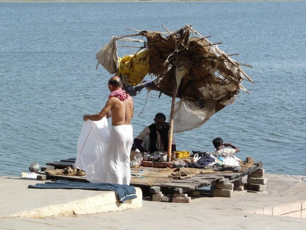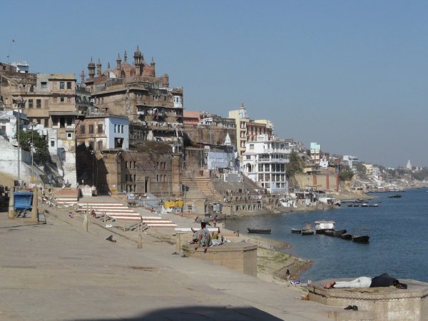 Varanasi is one of the most sacred sites in Hinduism. It is also one of the “must see” sites on the tourist circuit. It’s on the river Ganges – the most sacred of rivers, and to be cremated here gives one direct moksh, nirvan, entry into heaven or whatever, no questions asked about what your karma score is. A dip in the Ganges anywhere will wash away your sins, but a dip here is extra strong, double action with oxy-burst granules that leave you much more sinless than any other place. It is one of the oldest continuously inhabited sites in the world. It’s been a pilgrimage site before anyone knew what a pilgrimage site was. It is the holiest place to be cremated in all of Hinduism.