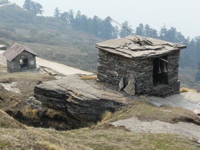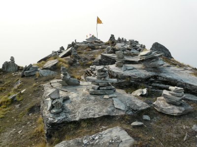 We stayed at a small hut on the way up called Dev Darshani (so called because this is where the temple above becomes visible for the first time). On the first day we went up to the temple as well as the peak (called Chandrashila Peak) about a kilometer above the temple (and just above 4000m elevation), before coming back down to Dev Darshani for the night.