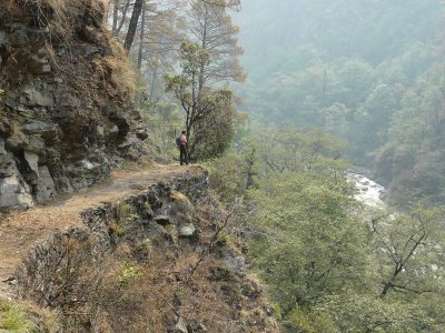The path to Gondhar. The Madhmaheshwar Ganga river can be seen at the valley floor below