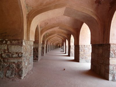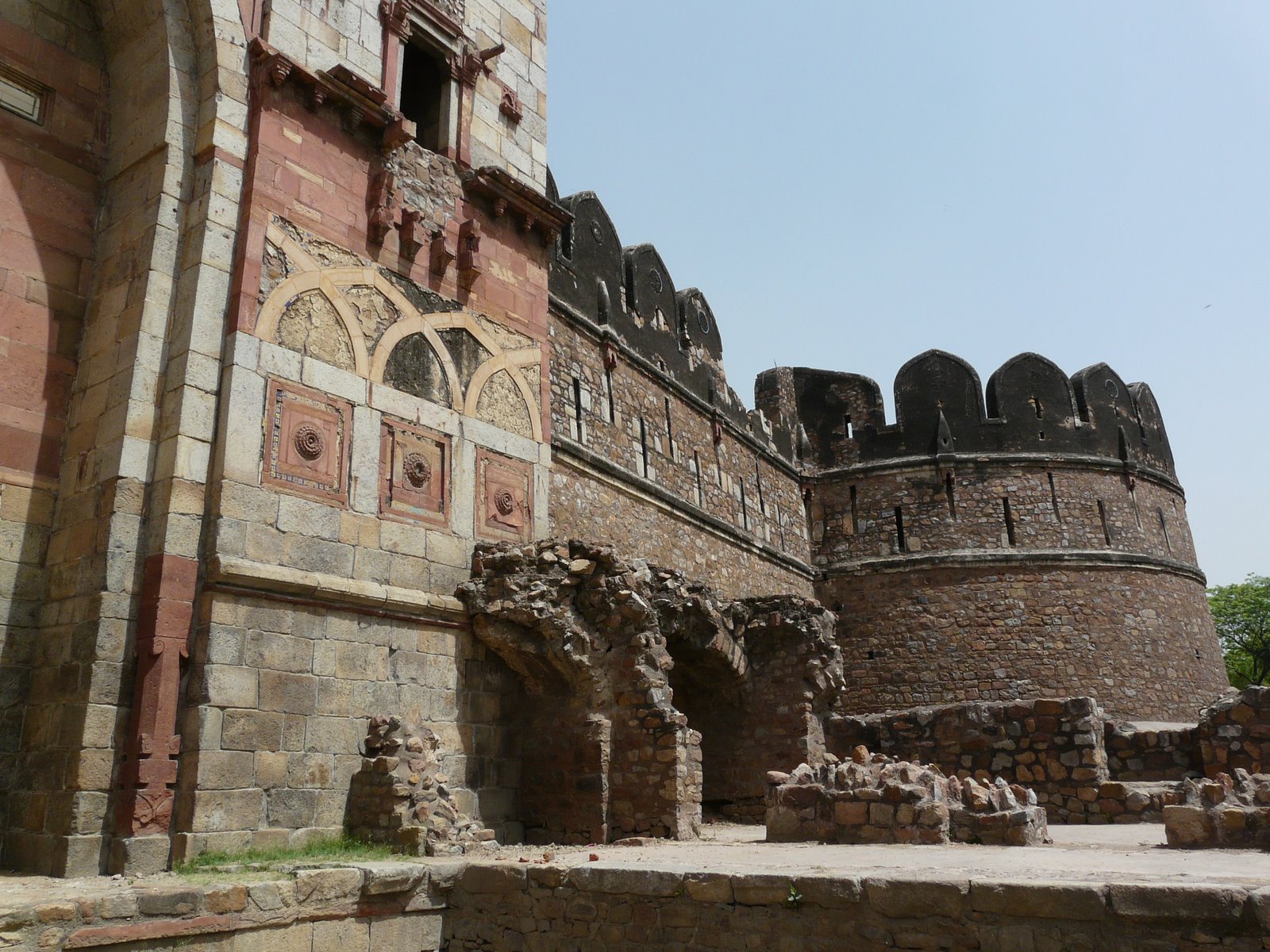 The ramparts of Purana Qila are one of the iconic sights in Delhi. They were built by Humayun and Sher Shah Suri in the first half of the 16th century. The gates of Purana Qila are pretty interesting, especially when compared to the gateways of later Mughal palaces/forts. This was one of the first forts/palace complexes built by the Mughals, so architecturally it is interesting to see the development of the Mughal style from here on out. The only problem with this is that the two remaining buildings inside the fort were probably built by Sher Shah Suri, who was not a Mughal, as were, possibly, the gateways as they are visible today. However, stylistically these are all built very similar to what has become known as the Mughal style. Equally interesting is the stylistic continuity between previous Delhi buildings and the ones at Purana Qila.