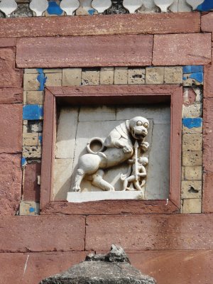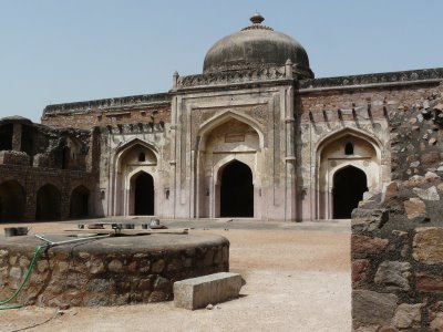 The second remaining structure is the Sher Mandal, a secular palace structure which is said to have been a library or astronomical observation building, and running down the stairs of which Humayun is said to have fallen and died.