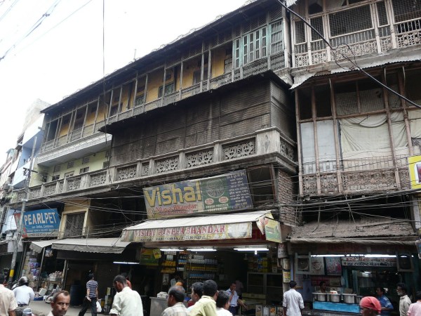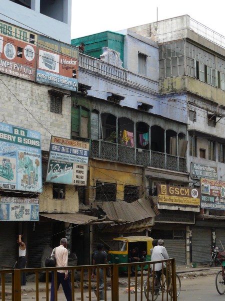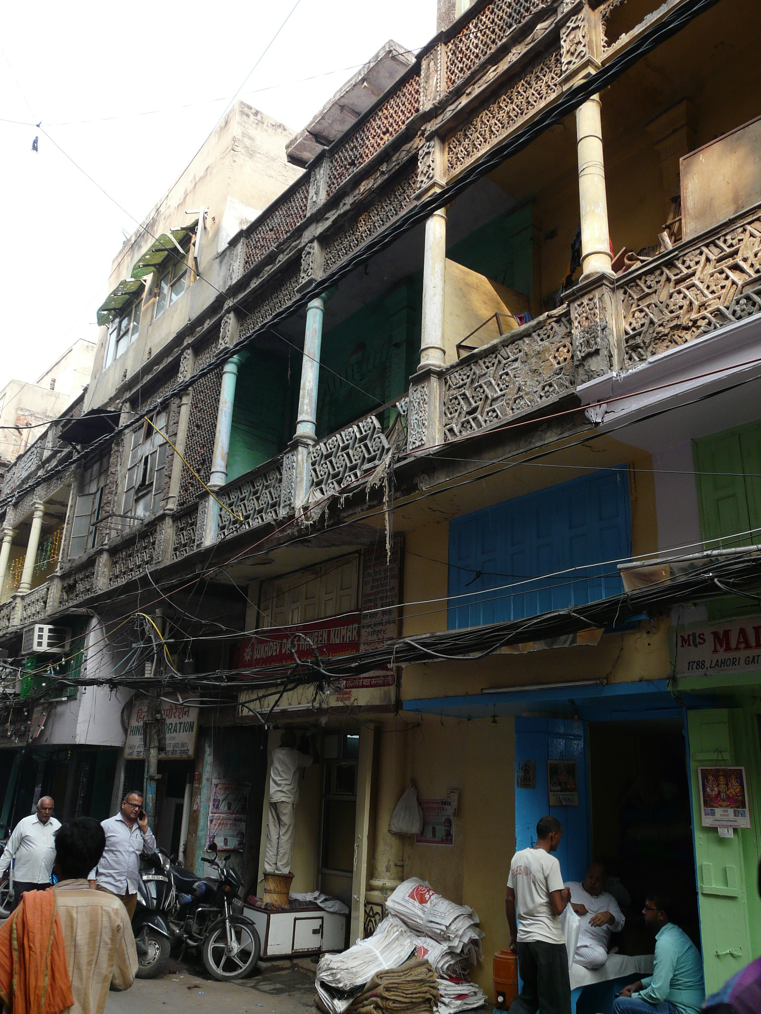 Many buildings on the wider Shahjahanabad streets would have looked like this – a balcony on the first-floor creating a covered arcade on the ground-floor where the shops are. Today, buildings like these on heavier trafficked streets are much altered