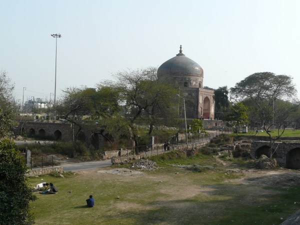 The image below shows Nila Gumbad and the area around it, taken from close to the eastern pavilion that lies along the outer wall of Humayun’s Tomb. The road that the ASI wants to reroute around Nila Gumbad currently passes between the monument and Humayun’s Tomb. It’s also very probable that in constructing the road, the arched wall connecting Nila Gumbad with Humayun’s Tomb was broken, which the ASI probably wants to restore as well.