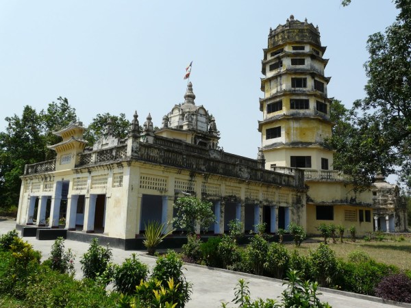 While at Sravasti I came across this interesting monastery, which I’m assuming was built around the 1950s/60s, and started by people from Korea or Japan. The architecture is a fascinating mix of colonial bungalow, typical residential embellishments from the 50s – which include a mix of watered-down art deco and watered-down modernism, Hindu temple elements, early-Buddhist elements, ‘East Asian’ pagodas and torans etc etc. I especially love the pagoda made of brick and concrete with an octagonal base that could be part of a government or residential building anywhere in India from that time. The ‘temple’ at the back is very interesting as well!