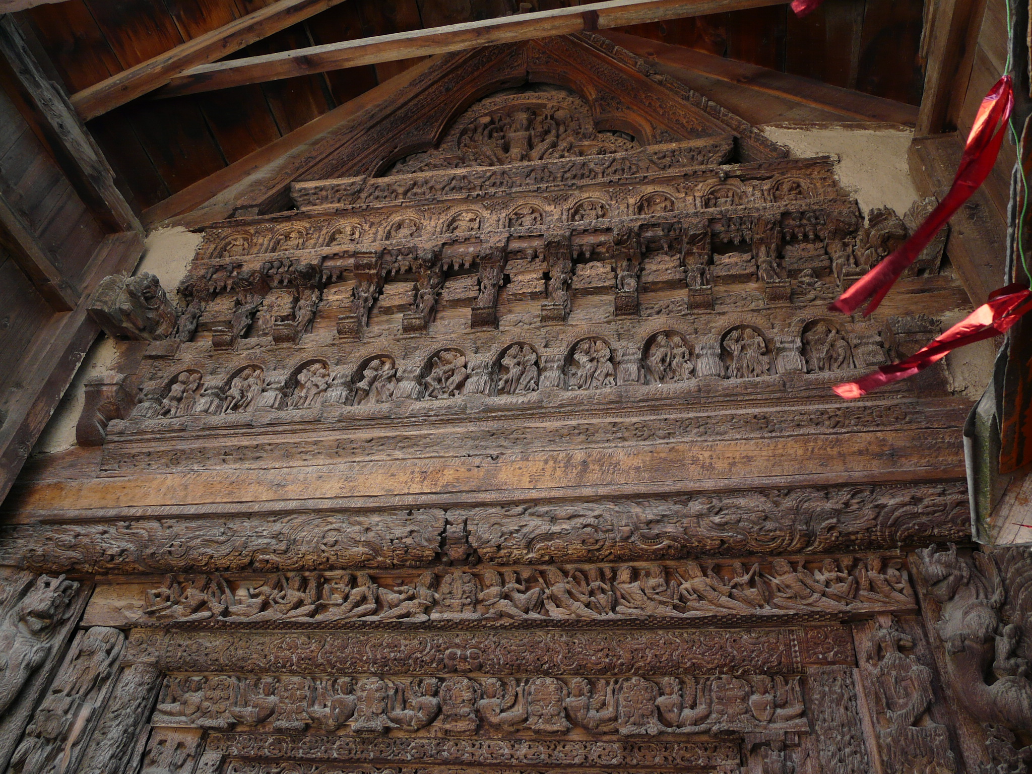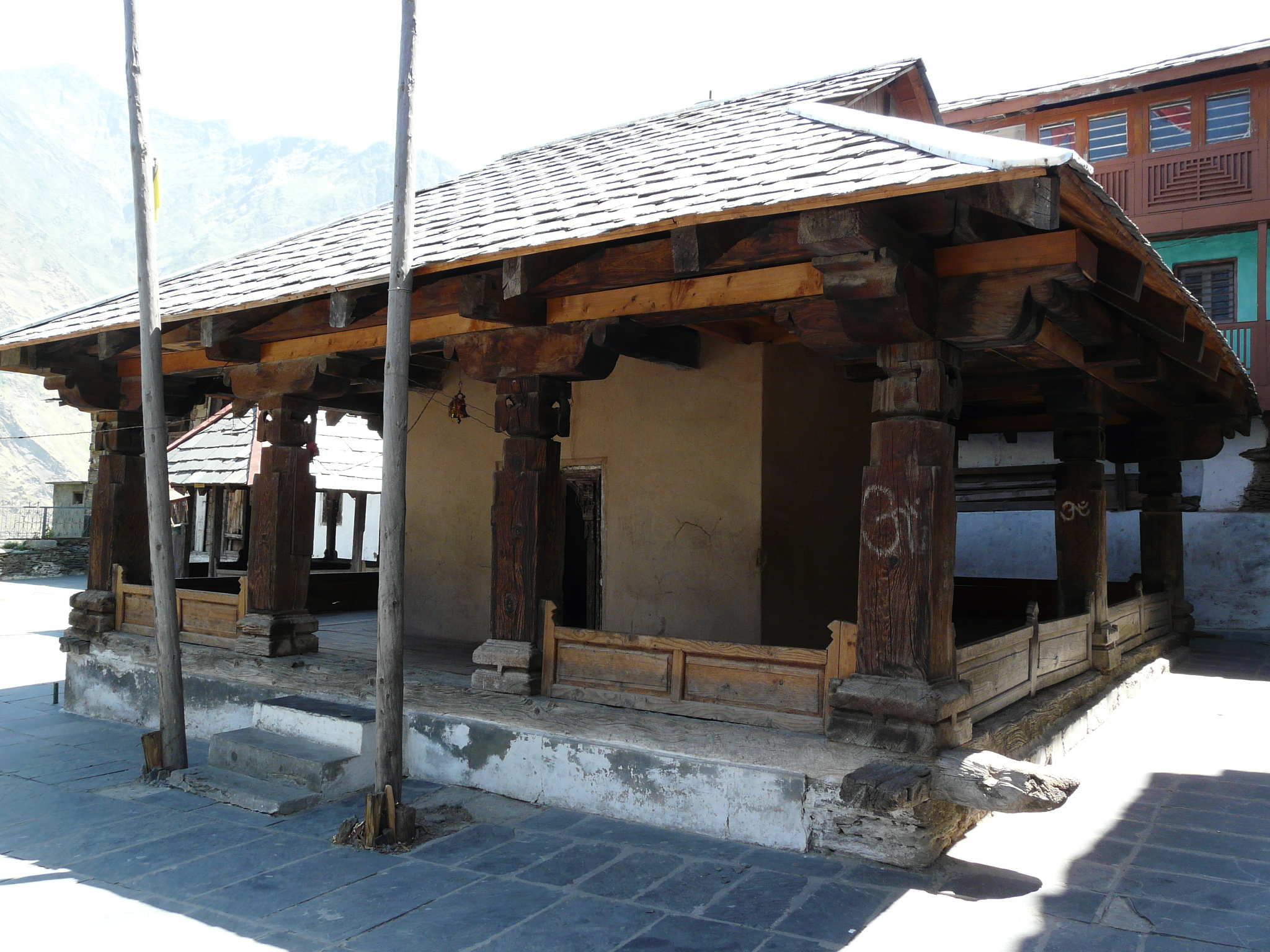 The 10th c AD Manimahesh temple is the largest stone temple – and is very impressive, followed by the Narsimha temple. The Lakhna Devi temple is a wood and masonry temple with intricate wooden carvings. The temple is said to date back to the 7th c AD, and whatever the vintage of the current carved woodwork, it is an excellent example of the kind of wooden carving that would have preceded stone-carving on Hindu temples, and on which stone-carving was based. The Chaurasi temple complex is also dotted with unique wooden pavilion-like temples or idol shelters, some of which are as big as small houses.