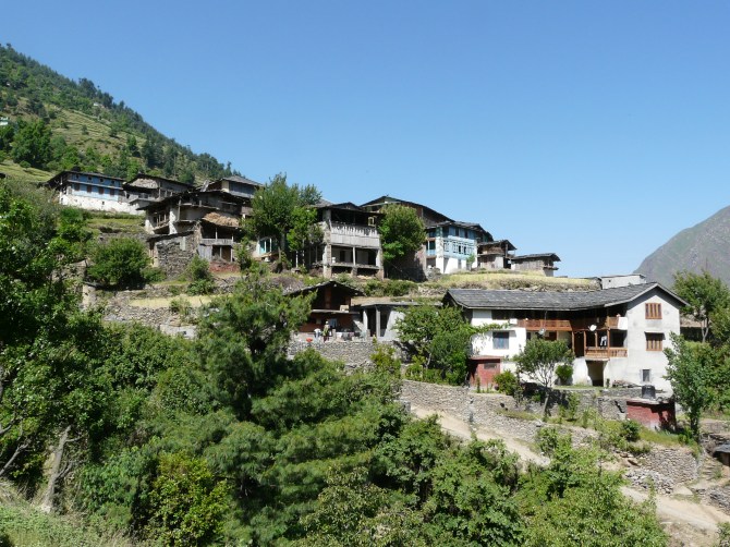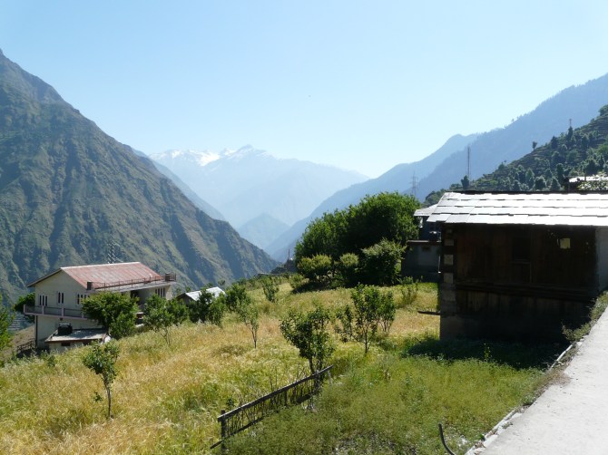 Bharmour is a small town further into the Chamba valley. The ride from Chamba to Bharmour is currently dusty and bumpy, with a succession of small hydro-power projects being built on the Ravi river which the road follows. After Kharamukh the road crosses the river and winds it’s way through a narrow and steep side-gorge towards Bharmour. By the time the road reaches Bharmour the gorge has opened up into a relatively more gently-sloping valley, though still high above the river below.