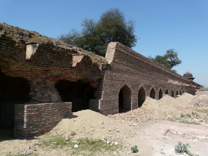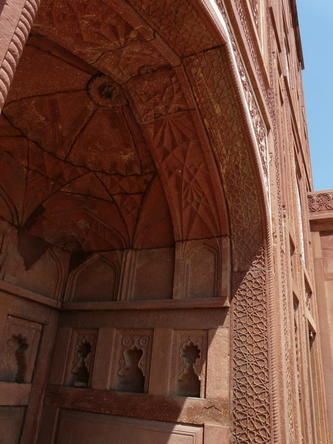 Just a quick look at the outer walls of Akbar’s 16th c palace, which were getting a fresh coat of paint and touch-up plaster when I visited in 2011. I wonder how many times in their existence these walls have been touched up like this. Northern India’s acute summer-rains-winter cycle means that the newly painted structure will start looking like the walls on the left again after just a few monsoons!