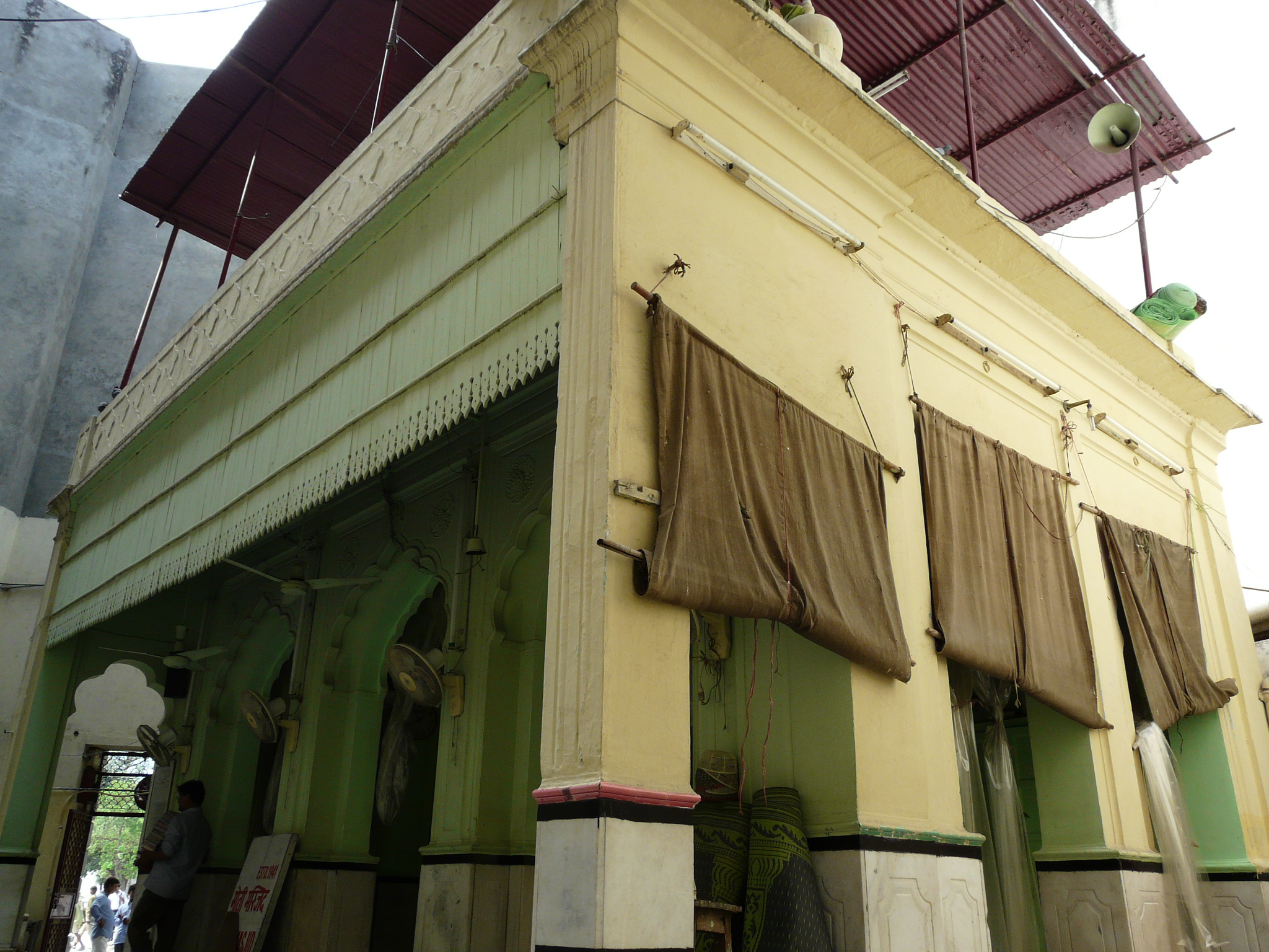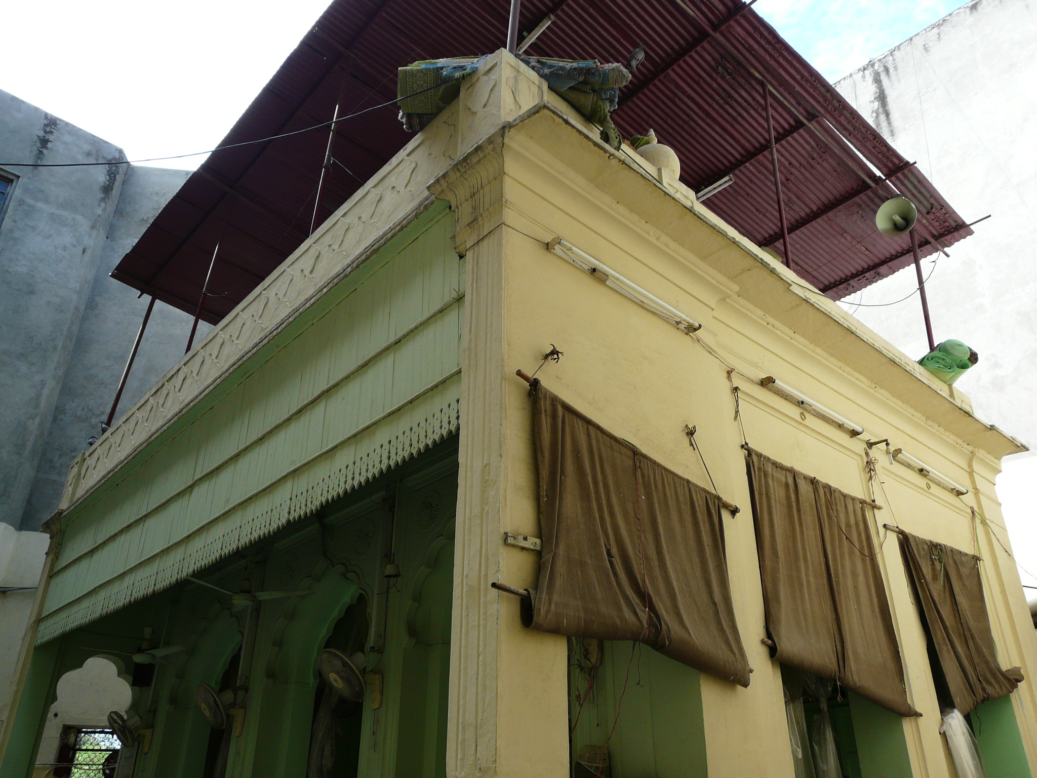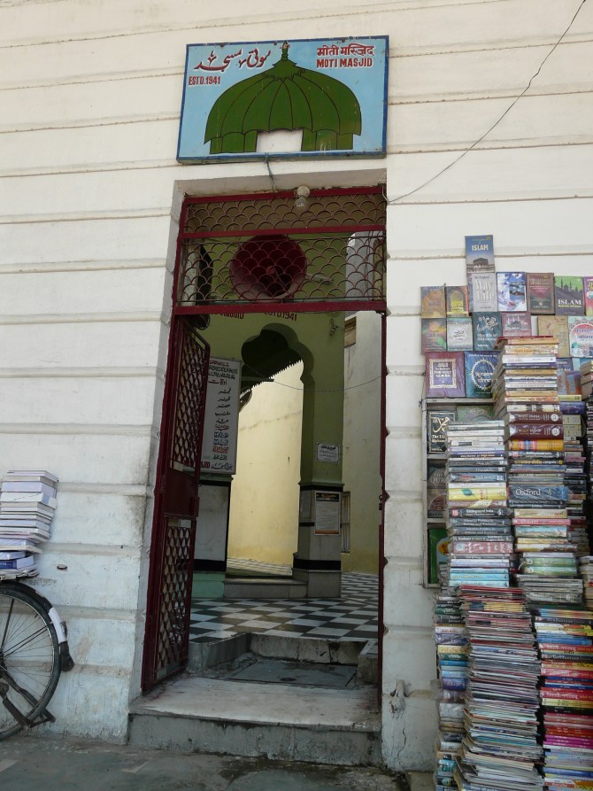 An example of such a mosque that would be familiar to anyone who has visited Connaught Place often is the Auliya Masjid near Minto Bridge on the outer circle of Connaught Place. This mosque is probably the only structure that halts the otherwise irrepressible circularity of Connaught Place’s design. Like most other such mosques (though larger than most), it consists of high rectangular walls that enclose a small courtyard and mihrab arcade, accessed via a few steps up from the main doorway.