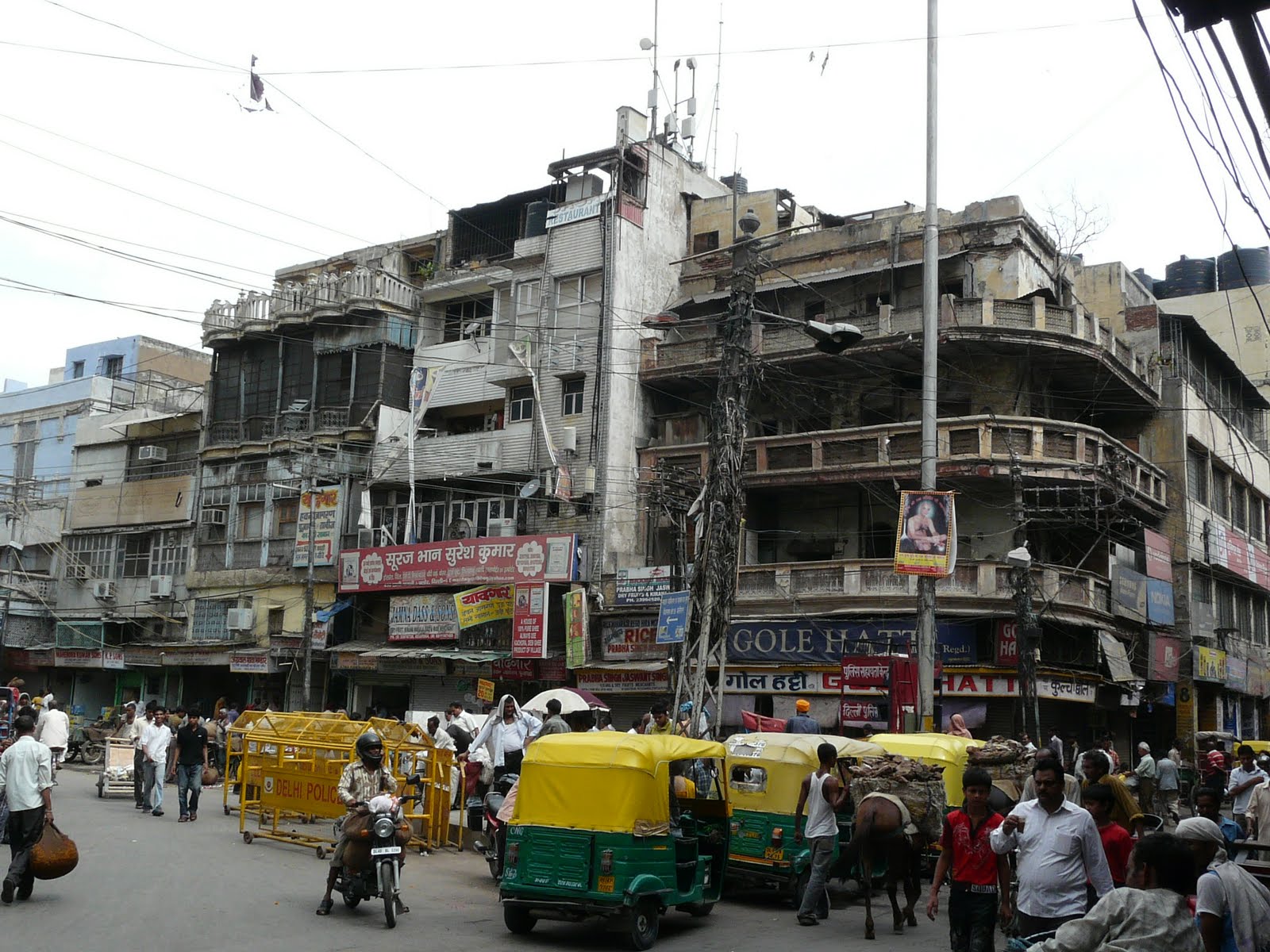 The corner building on Fatehpuri Chowk as it existed in July 2009 The half-demolished building as it stands in Sept 2012