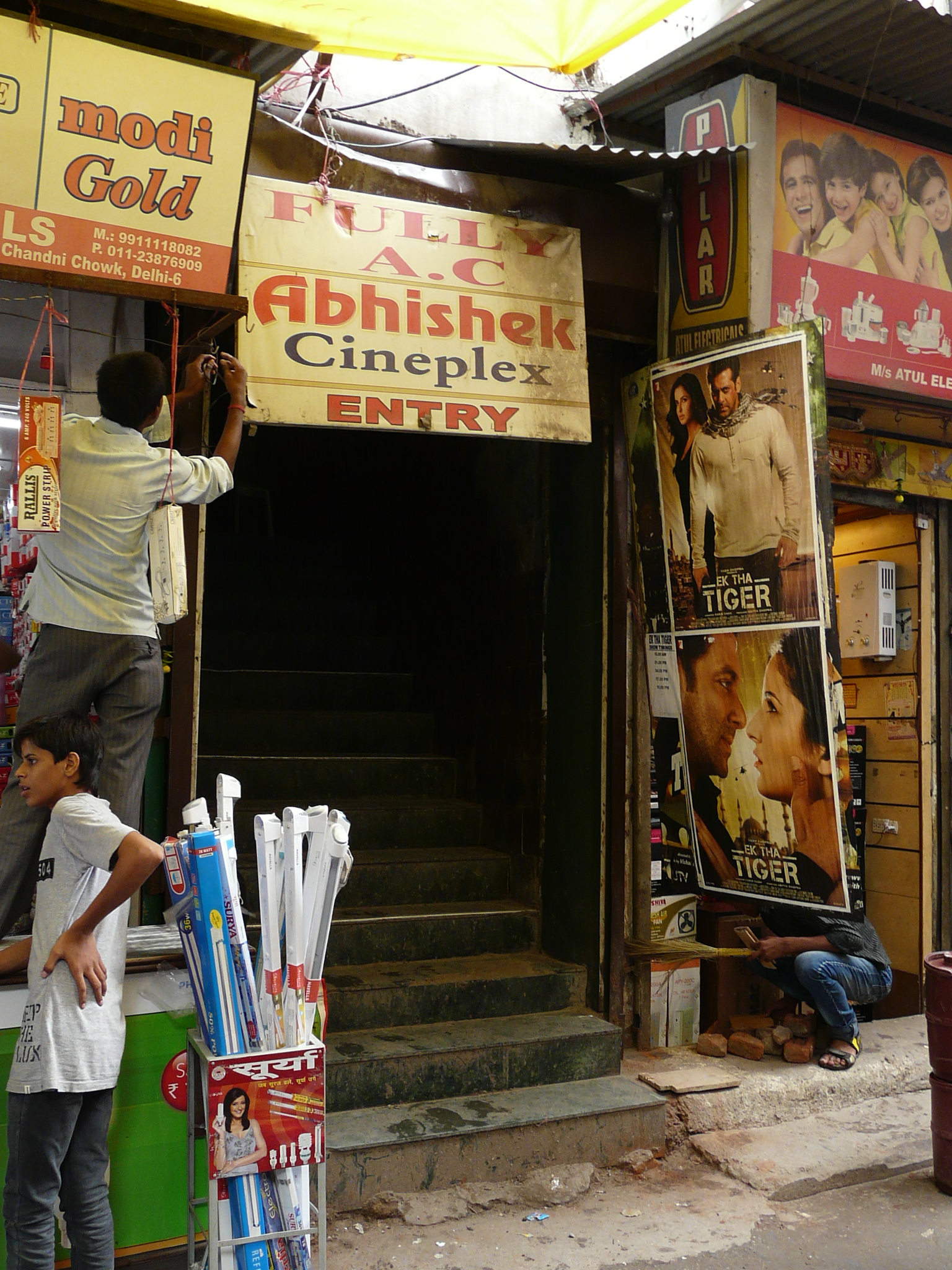 Kumar is a small theater (now apparently going by the name Abhishek Cineplex) on Chandni Chowk. Now that its foyer is occupied by a McDonald’s, there is a seedy entrance from the side, though the theater is showing the latest Bollywood movies.