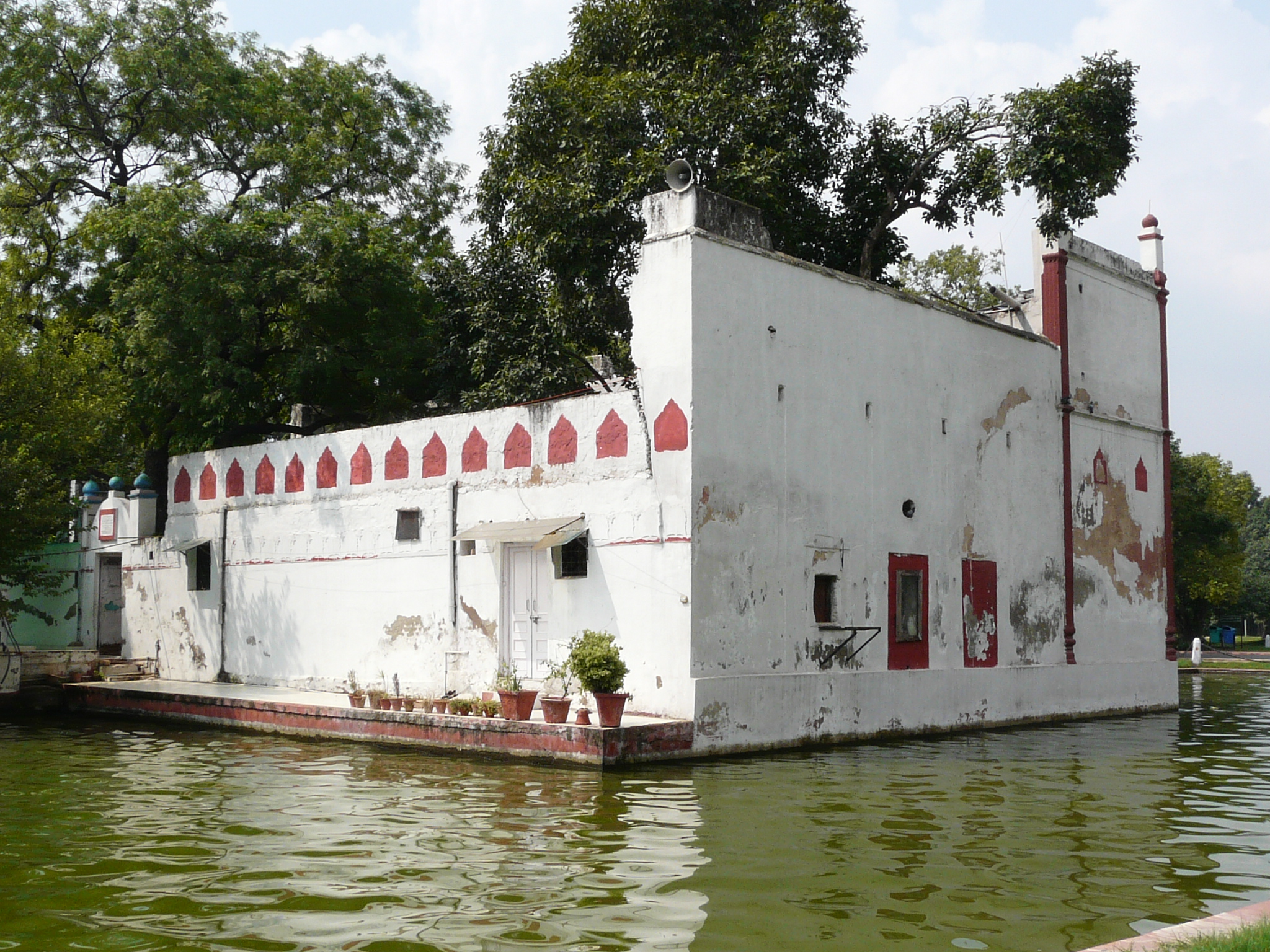 One such mosque lies on the lawns flanking Rajpath (the ceremonial road/axis that connects India Gate with Rashtrapath Bhawan), near the interscetion of Rajpath and Man Singh Road. This 18th c. mosque will be familiar to many people, as it juts out onto the long pool along the Rajpath lawns.
