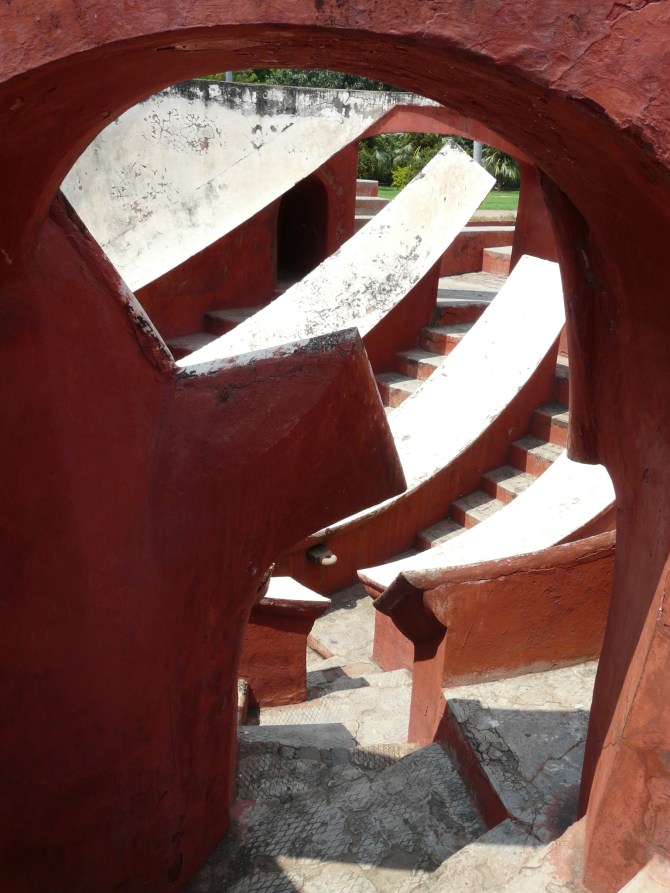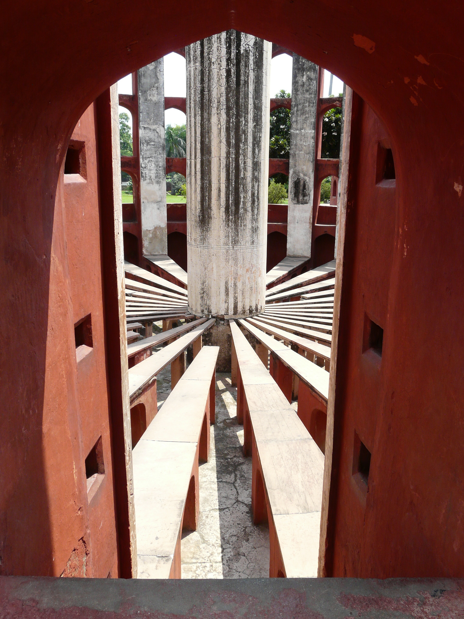 Samrat Yantr Misra Yantr New yantr behind old yantr Jai Prakash Ram Yantr Measurement inscriptions on the Ram Yantr instrument General view of Jantar Mantar.