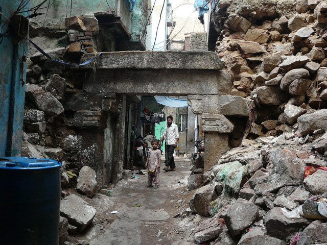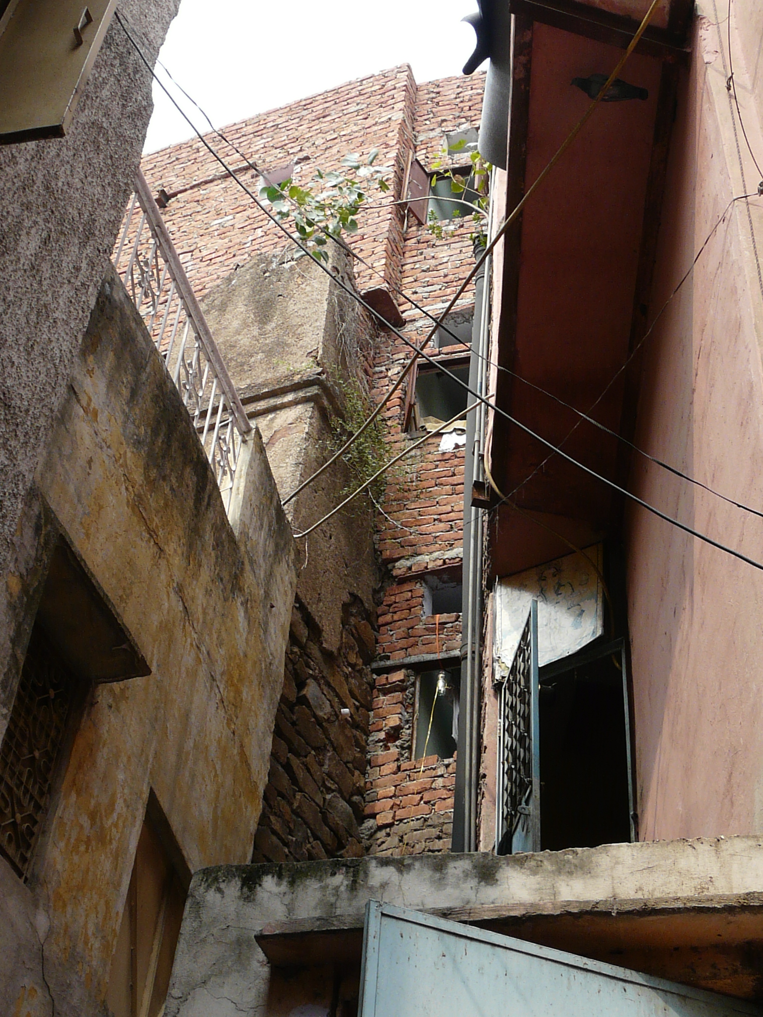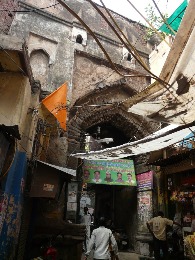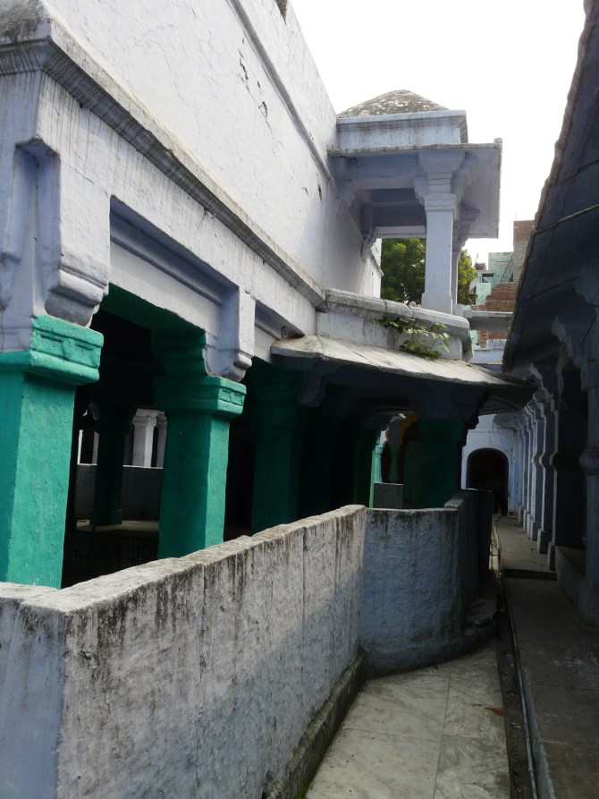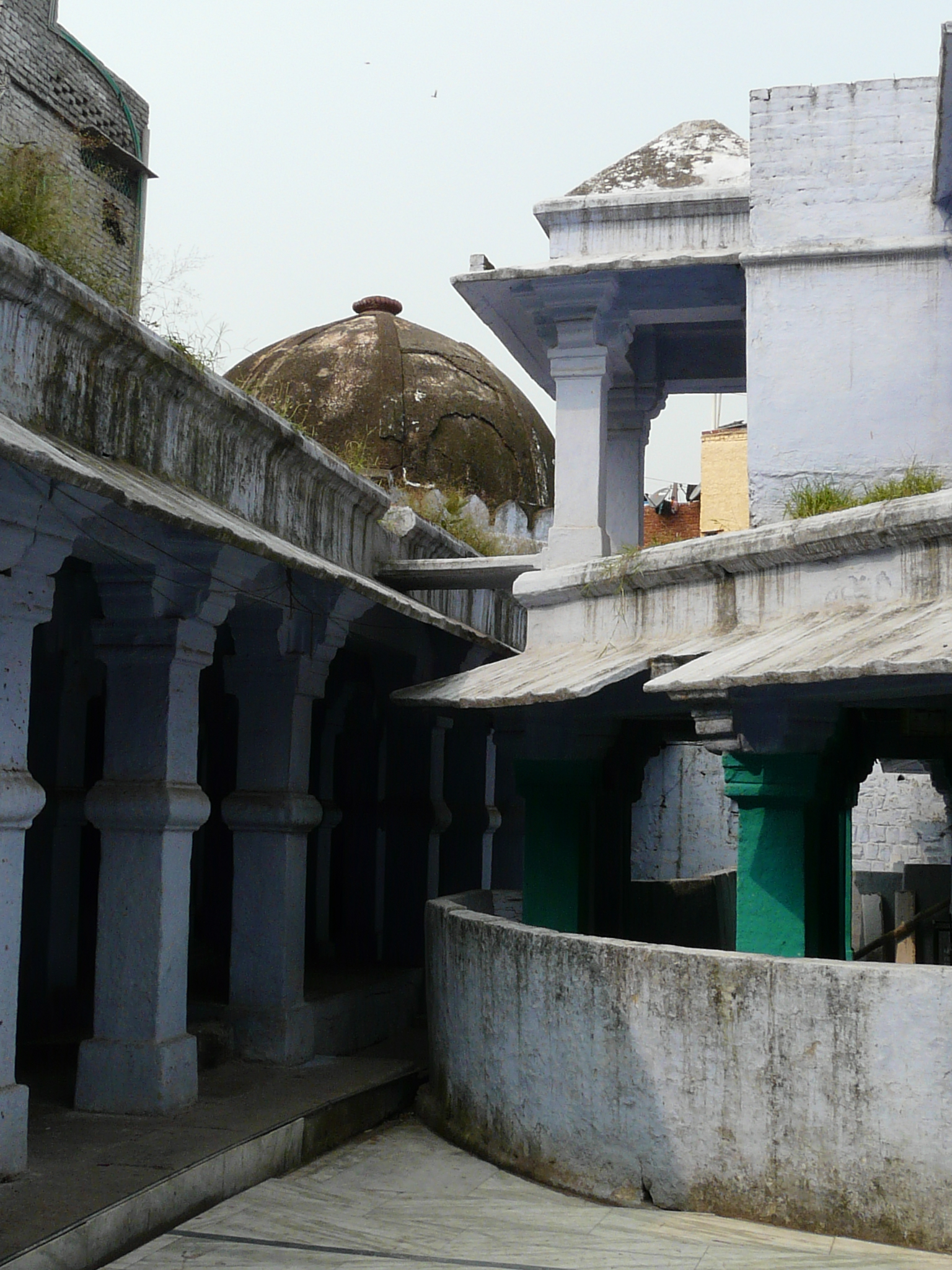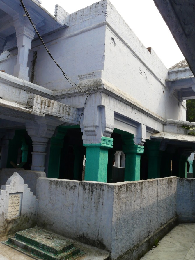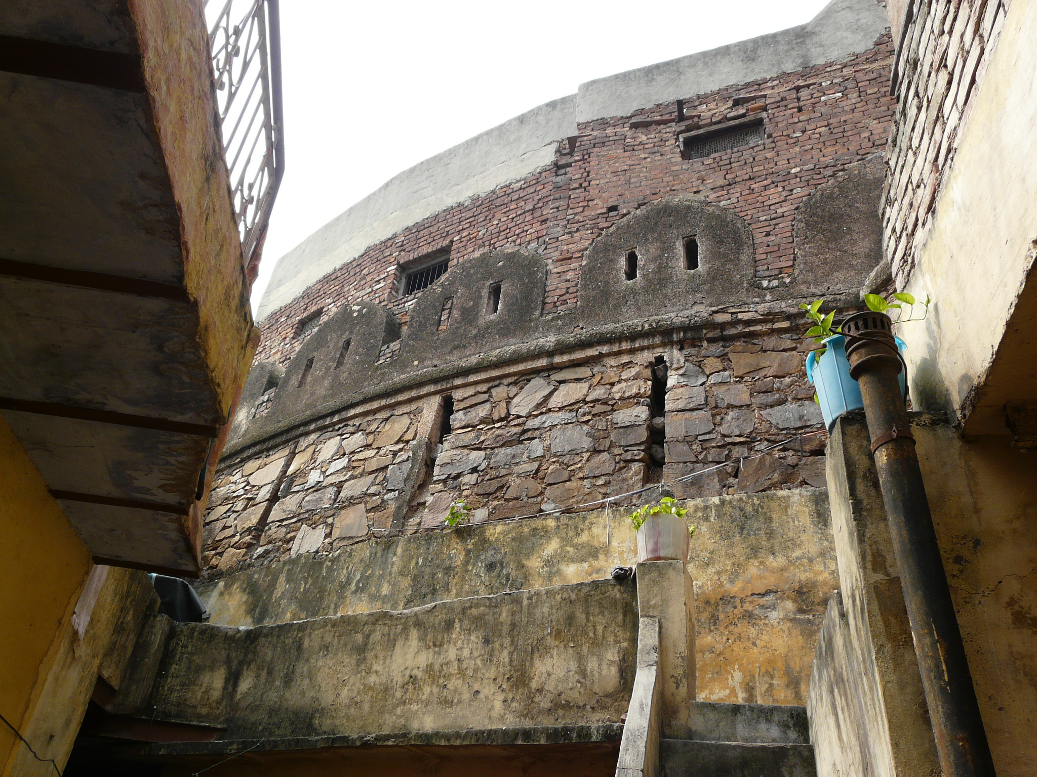 Eastern gateway of the fortifications around the tomb A new structure over a small bastion adjacent to the gateway, which follows the rounded shape of the bastion Inner gateway of the double-gate system Another gateway and remains of a wall just before the tomb. The lintel is now barely 5ft above the path Courtyard before Qadam Sharif Qadam Sharif entrance Qadam Sharif Side dome Fateh Khan’s grave Side arcade Late-Mughal dalan to the right of the entrance dome Decorative work (and swallow’s nests) on the inside of the entrance dome The encroached-upon northern gateway. We can see the corner battlements in between modern buildings Northern gateway and adjacent bastion. We can see the distinctive Tughlaq batter to the fortifications The northern gateway is completely closed/encroached save for this little side passage that still functions as a path in and out of the kot.