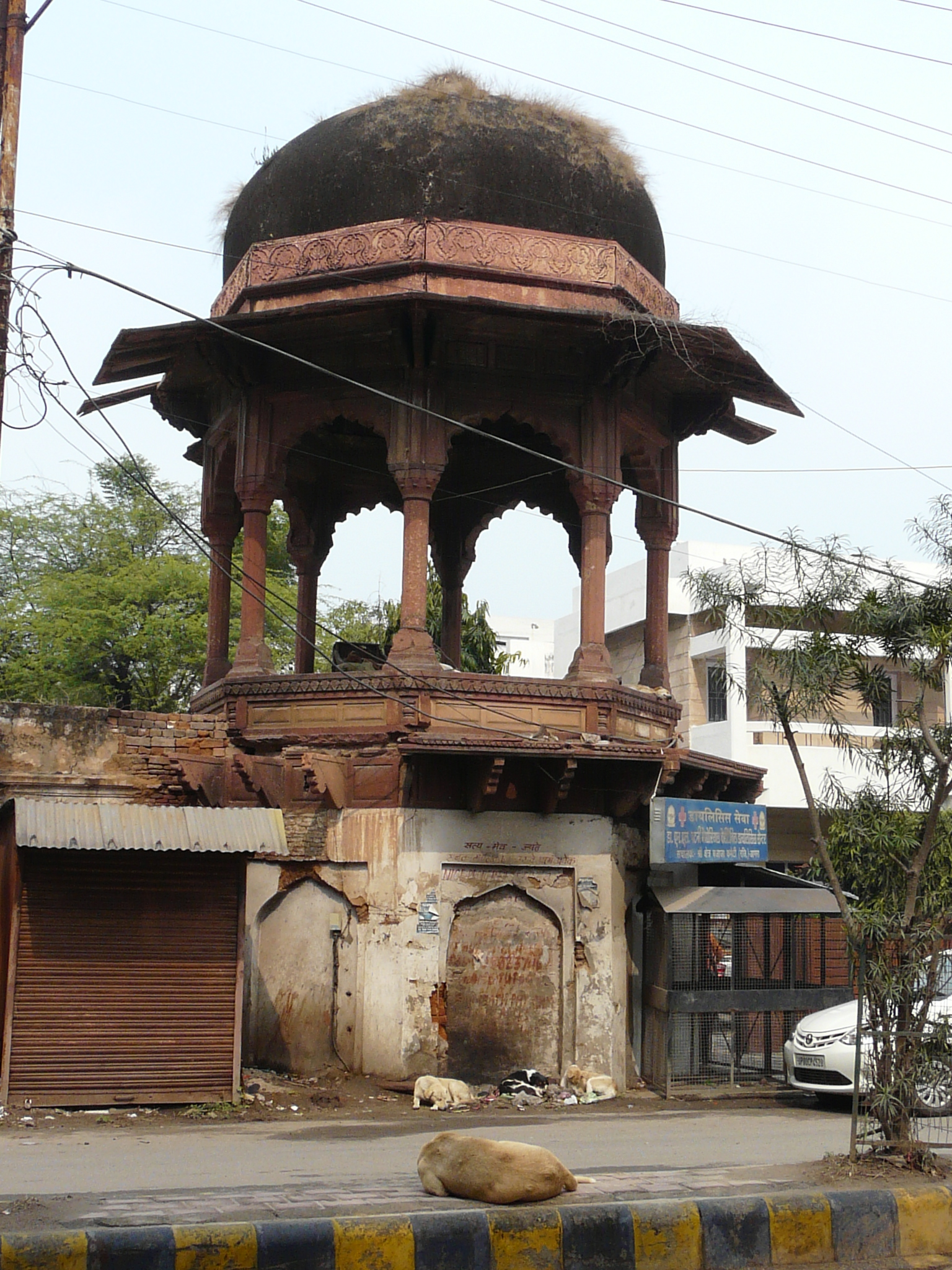 We all know the story of the Taj Mahal, how the Mughal emperor Shah Jahan built it as the tomb for his second and favorite wife Mumtaz Mahal, and that it is one of the greatest and most expensive testaments to romantic love in all of human history blah blah blah. However, also in Agra lies (or lay) the tomb of his first wife, Kandahari Begum. And what a difference between the two tombs! Technically, Kandahari Begum’s tomb does not exist any more, just the compound it was situated in does, along with one of the entrance gates, a portion of the wall and a couple of the wall’s corner cupolas. The compound became property of the Bharatpur rulers at some point in the colonial era, and a mansion/haveli was built in place of the central tomb. Compare the buildings in these photos to the Taj …