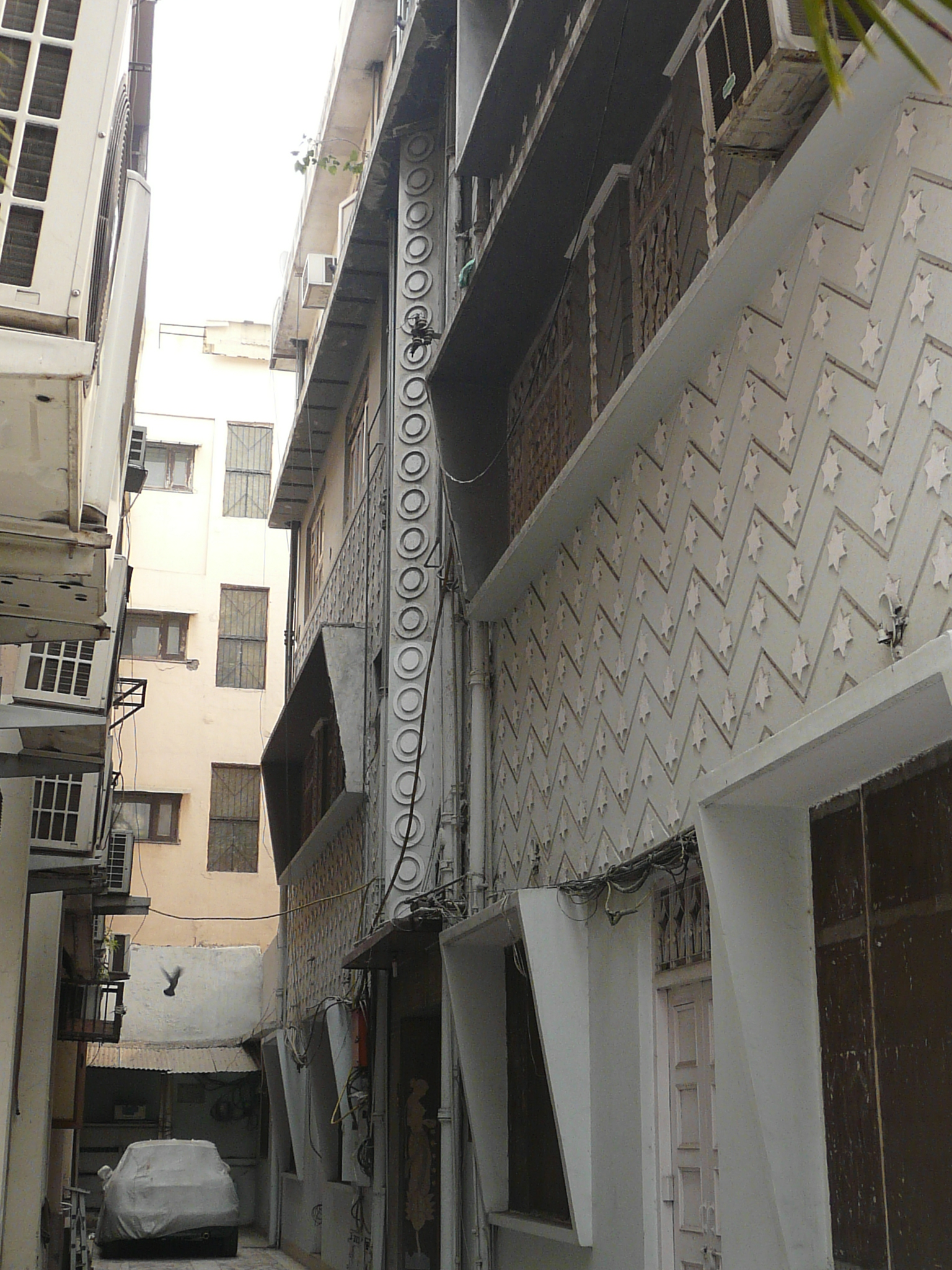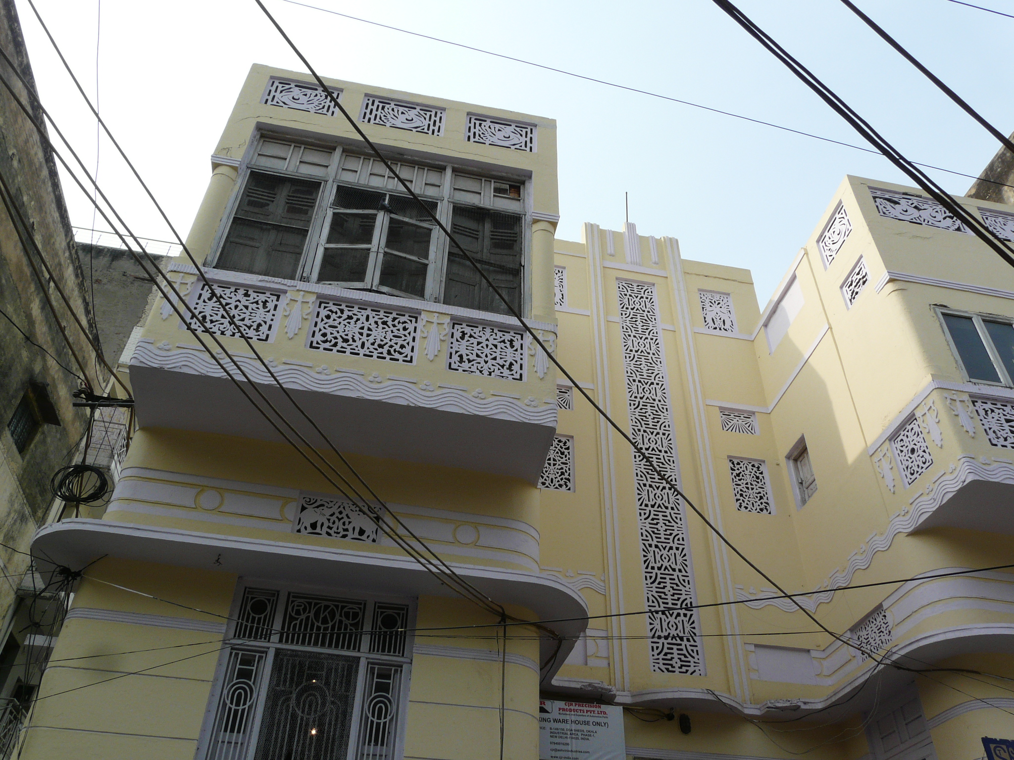 While the commercial part of Daryaganj was redeveloped in the early-20th c along Faiz Bazaar road (now Netaji Subhash Marg), the inner areas of Daryaganj, to the east of Netaji Subhash Marg, were developed into residential and institutional zones. In this and the next three posts I explore different parts of the residential areas of Daryaganj. These contain many existing examples of residential architecture from the first half of the 20th century. My particular interest is in the modified versions of Art Deco that were employed in many of these buildings, which I am calling “Desi Deco“, mostly from the 1930s-1950s. Buildings in more neoclassical colonial styles, as well as hybrid styles that include older decorative elements from haveli architecture and late-Mughal architecture have also been included.