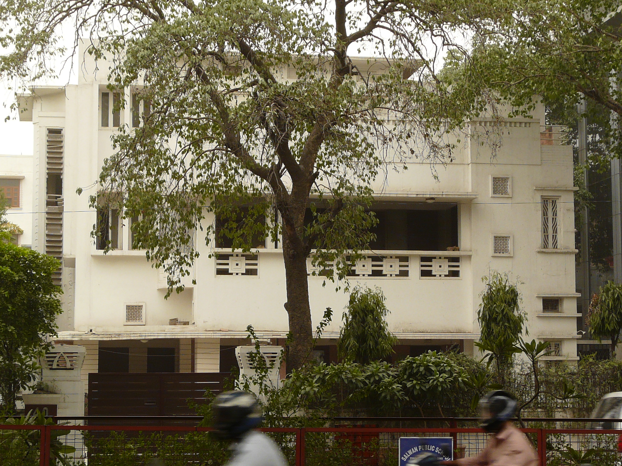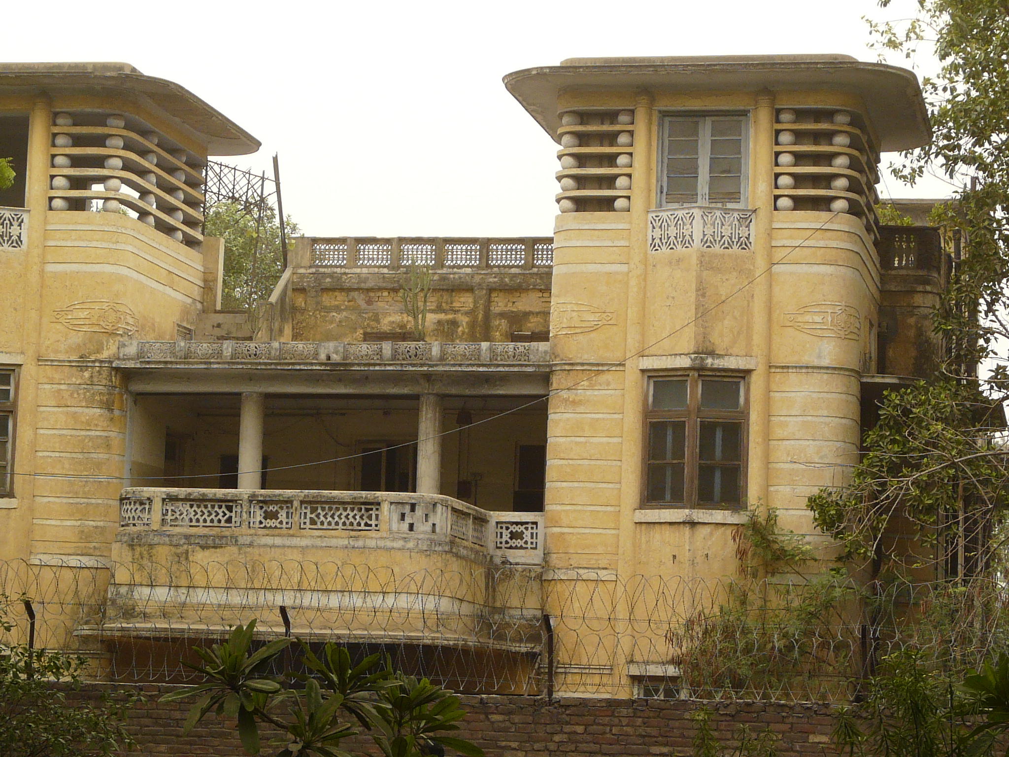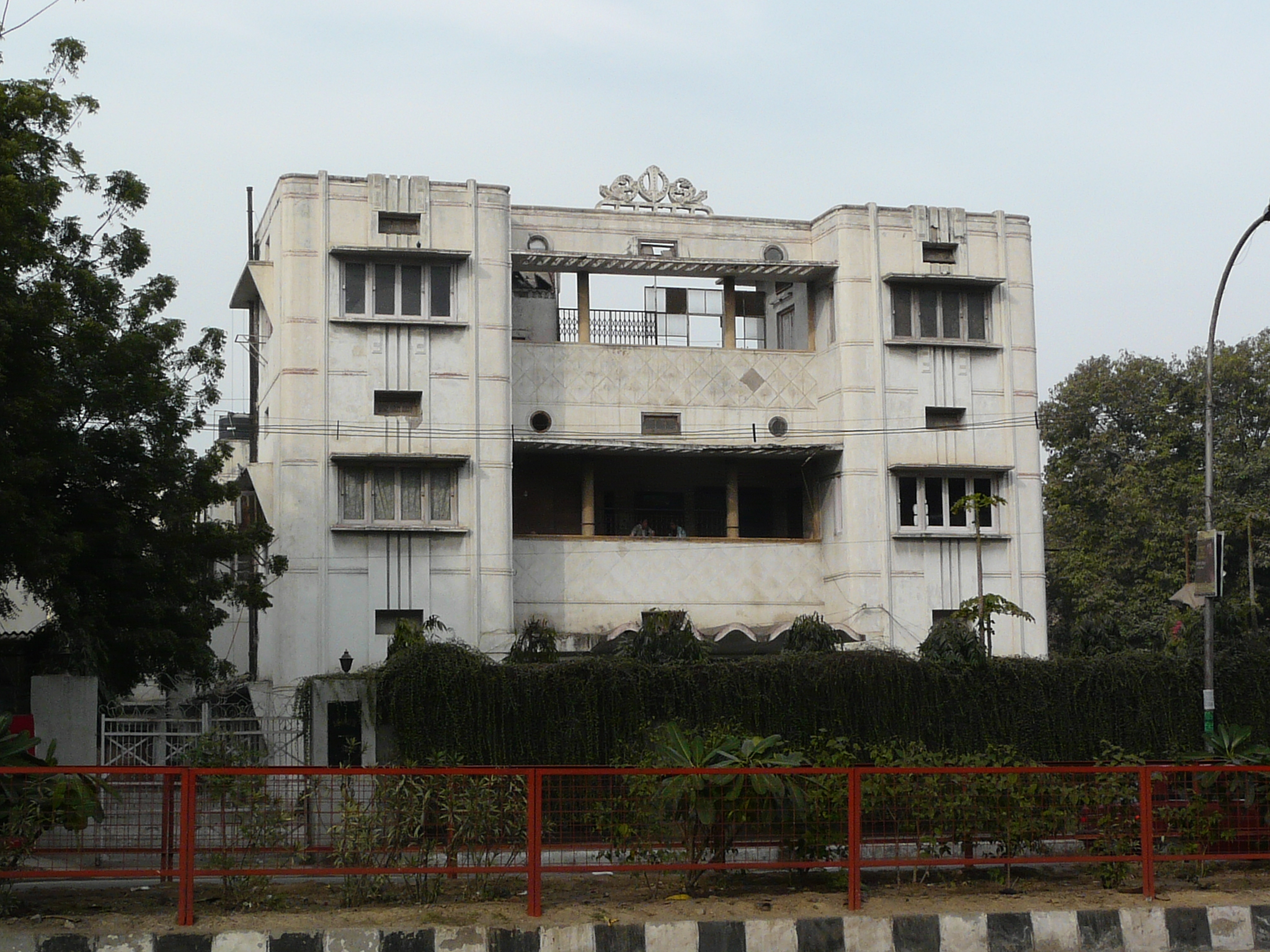 The stretch of Pusa Road that runs along the southern edge of Karol Bagh is lined with a zany set of large desi deco bungalows. Karol Bagh as a whole is a treasure trove of buildings in the desi deco style and its contemporaneous “proto-modernist” style (in the Indian context). By the early 20th c, areas such as Paharganj and Sadar Bazaar had already been urbanized to some extent, so planned neighborhoods like Basti Harphool Singh and Deputy Ganj were being inserted into a preexisting (mostly unplanned) urban landscape. Karol Bagh was west of these other locations, and therefore was further away from the main city (Shahjahanabad), and relatively un-urbanized. Just like in the case of Paharganj and Sadar Bazaar though, while there were various schemes to develop the Karol Bagh area in the early 20th c, actual construction only took place between the 1930s and 50s, which is the oldest building stock we see in the area today, including on Pusa Road.