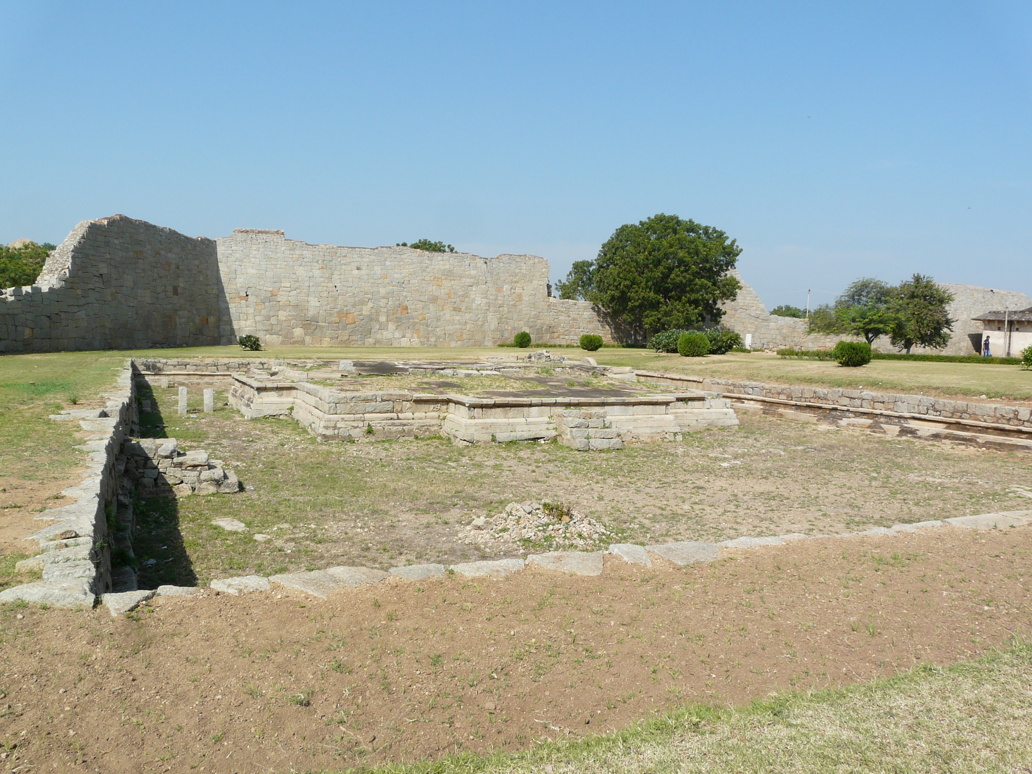 The Royal Center contained the main palace buildings of the Vijaynagar rulers. These were sectioned off into separate enclosures, each enclosure surrounded by high, thick and tapered stone walls. Fortified double walls surrounded the entire set of enclosures.