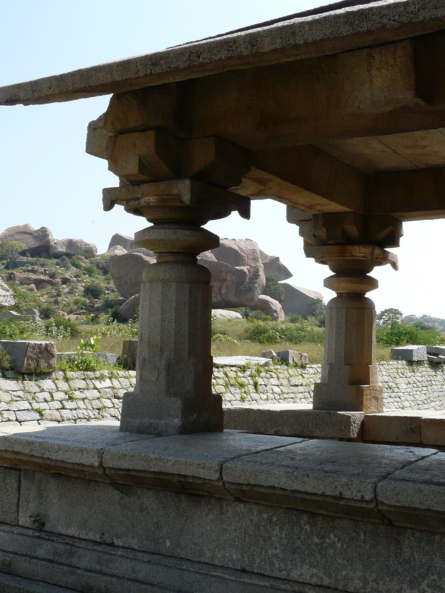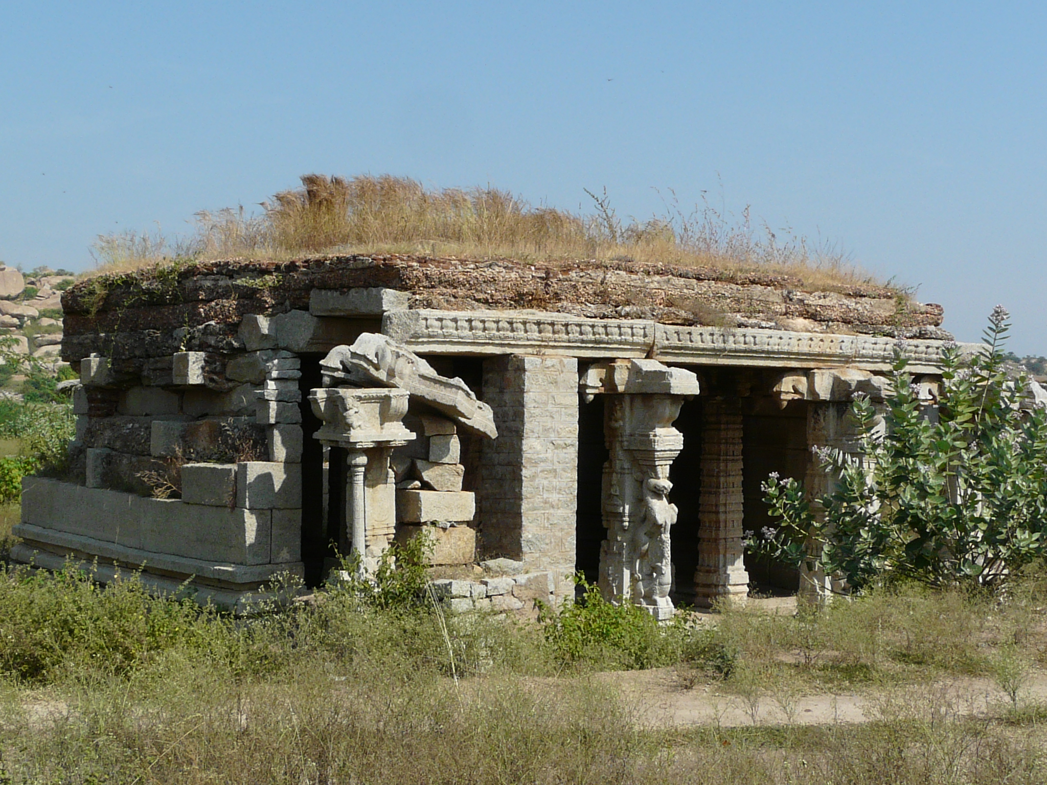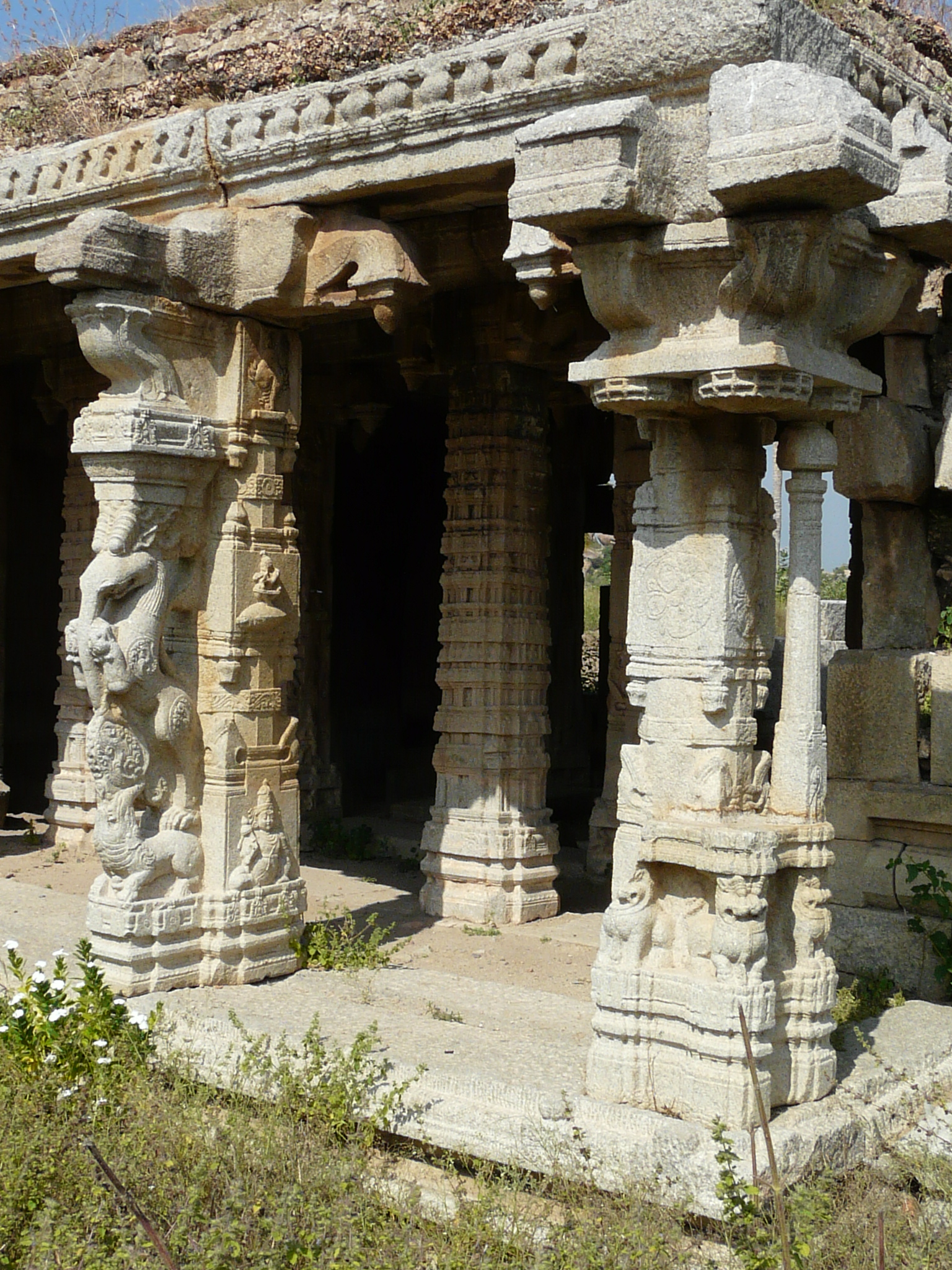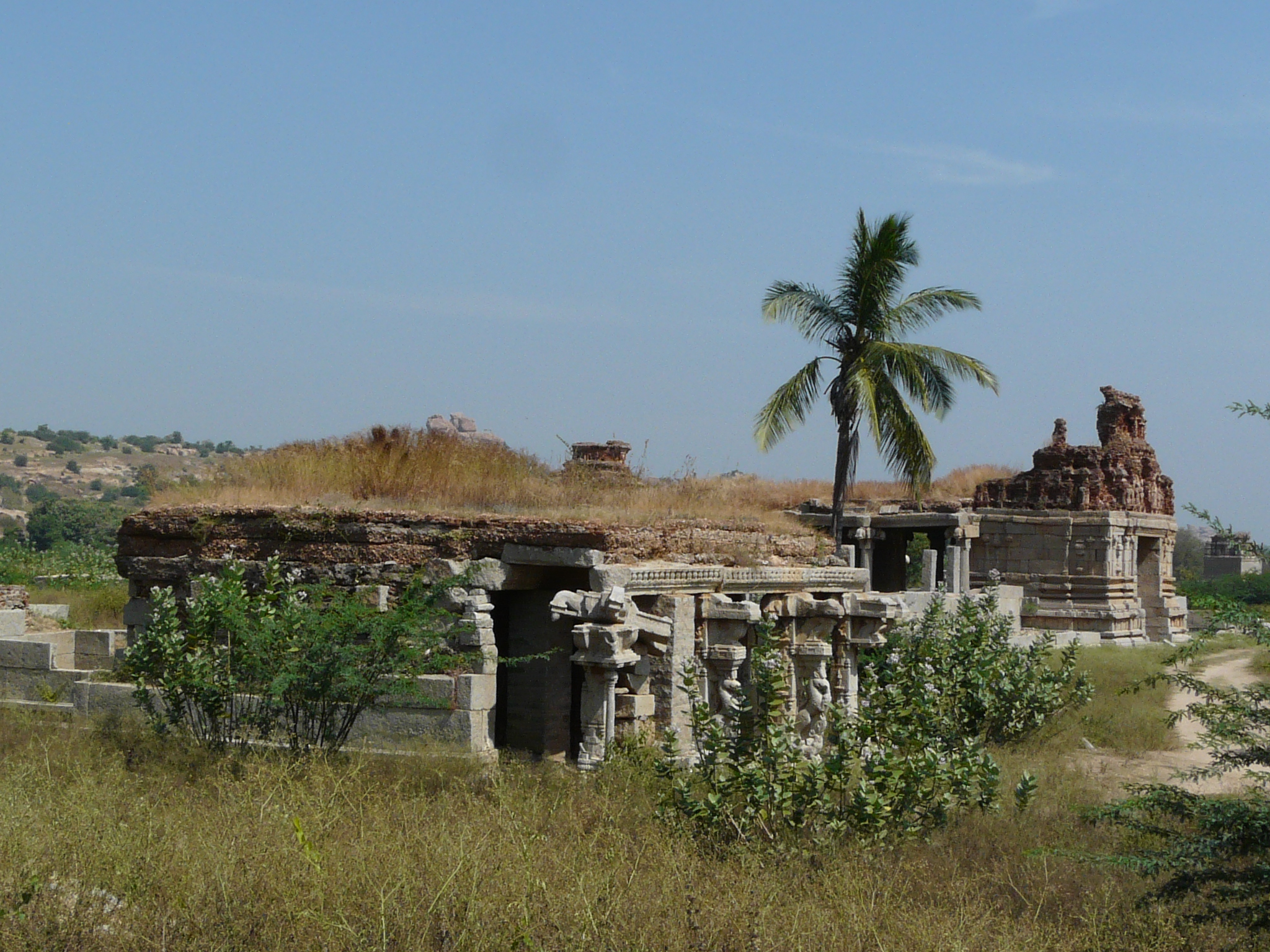 To the immediate south and east of the Lotus Mahal enclosure and elephant stables are a scattering of interesting smaller structures. These lie on a road that started from the front of Hazara Rama Temple at the center of the Royal Center and led out of the center via a gateway to the east.