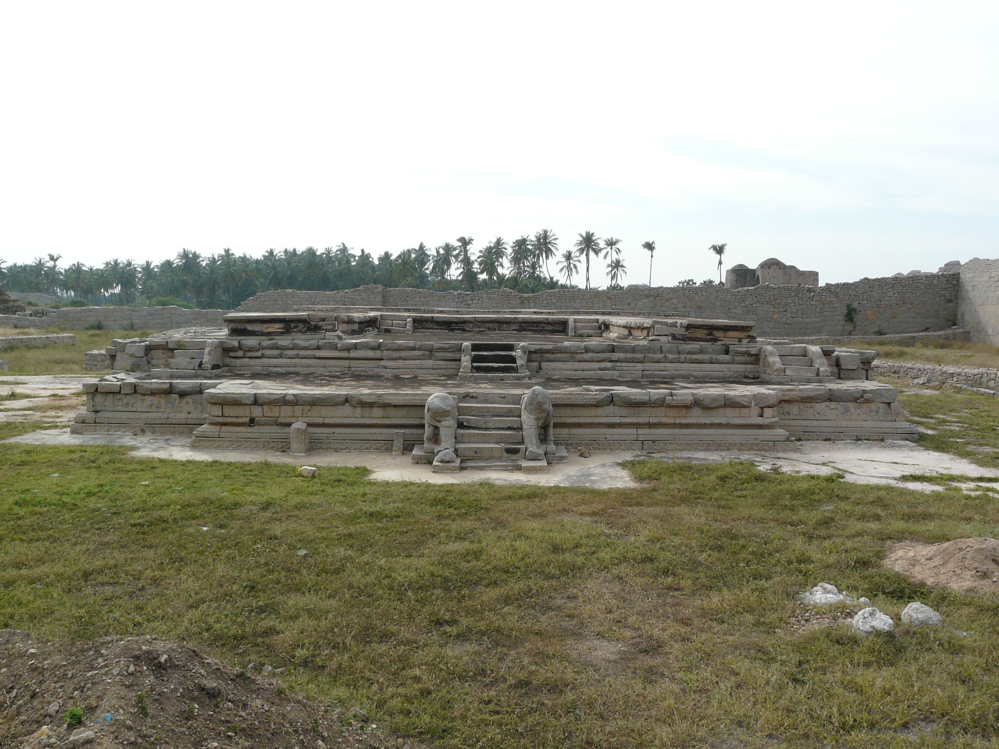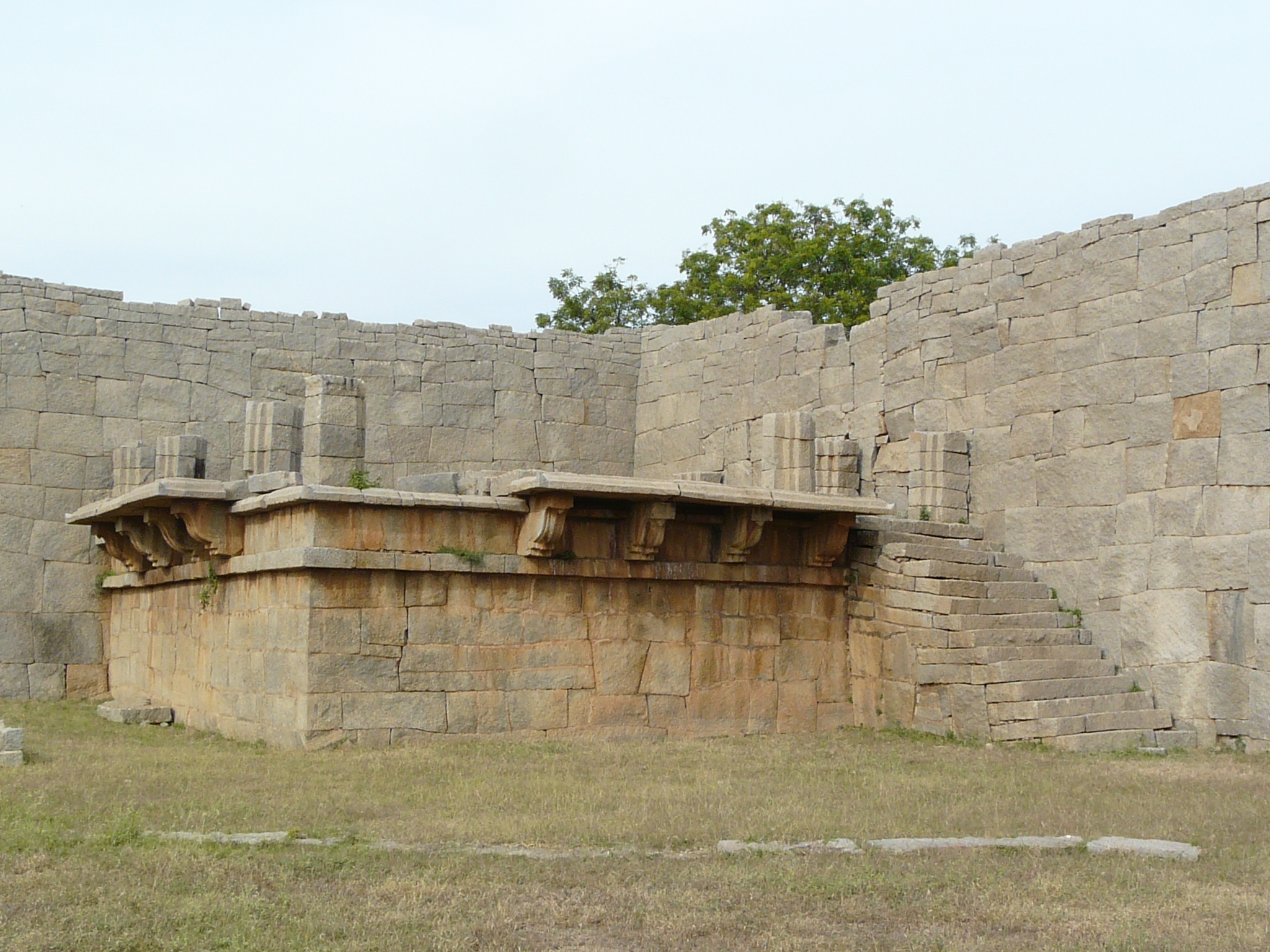 Ruins near the archeological office, between the Lotus Mahal enclosure and Hazara Rama Temple. Looks like a gateway and/or parts of a royal compound with reception hall