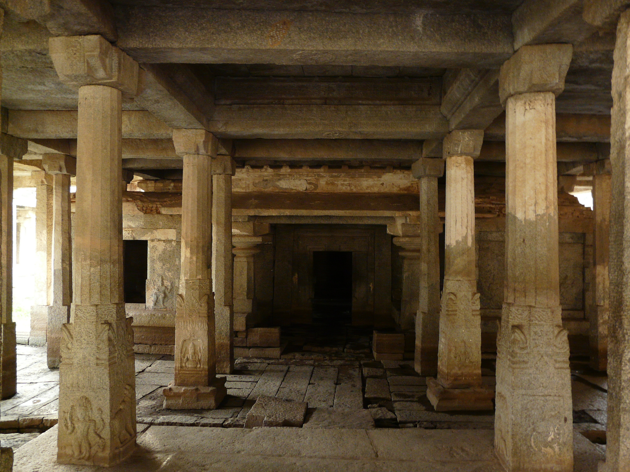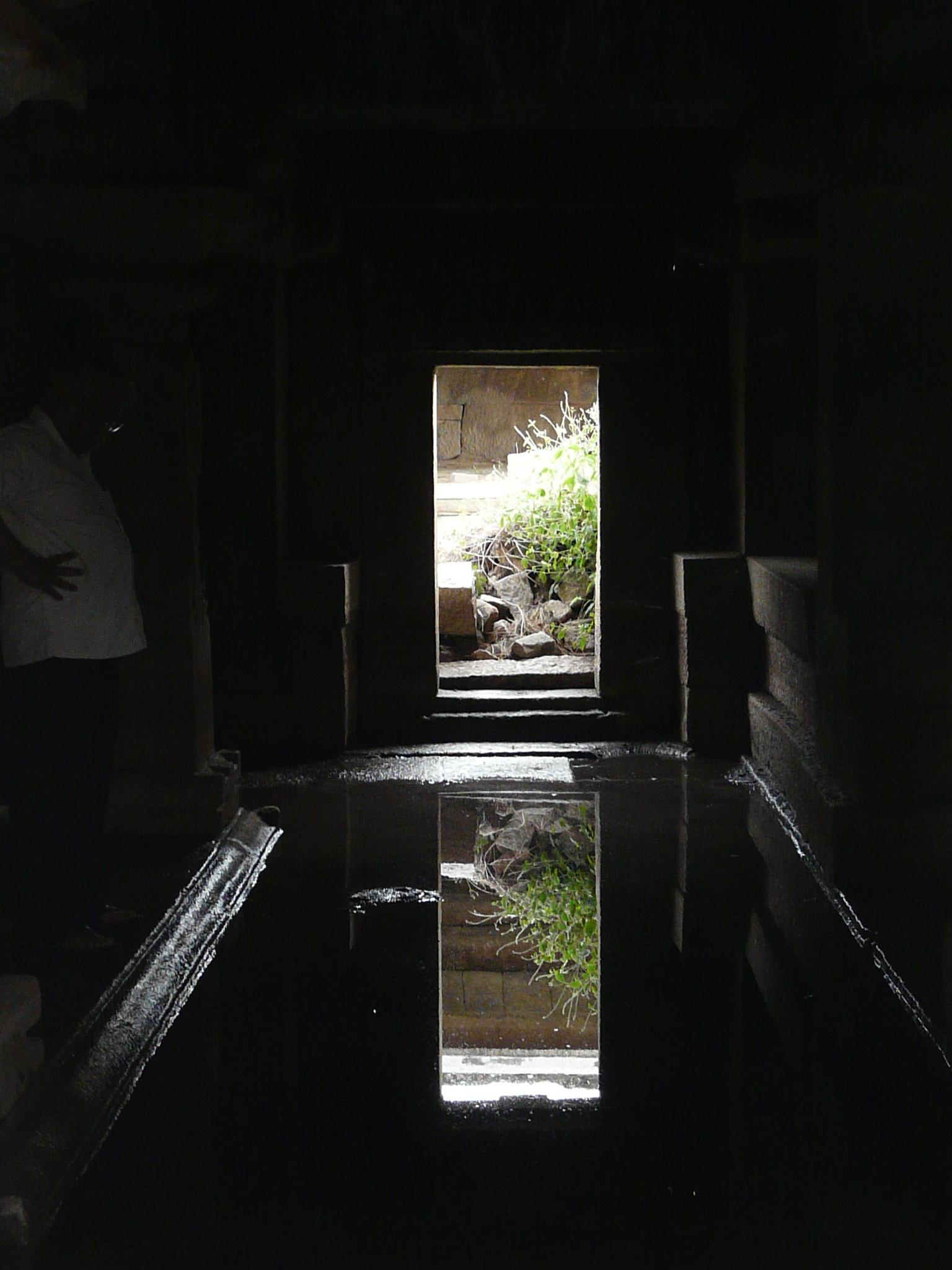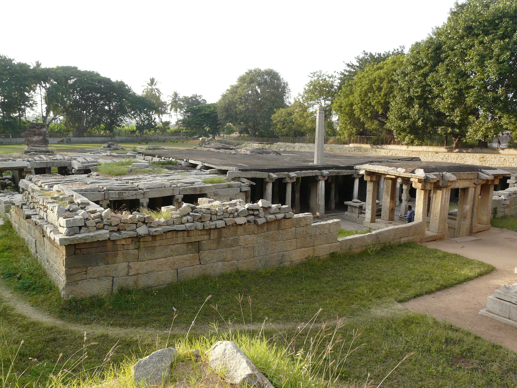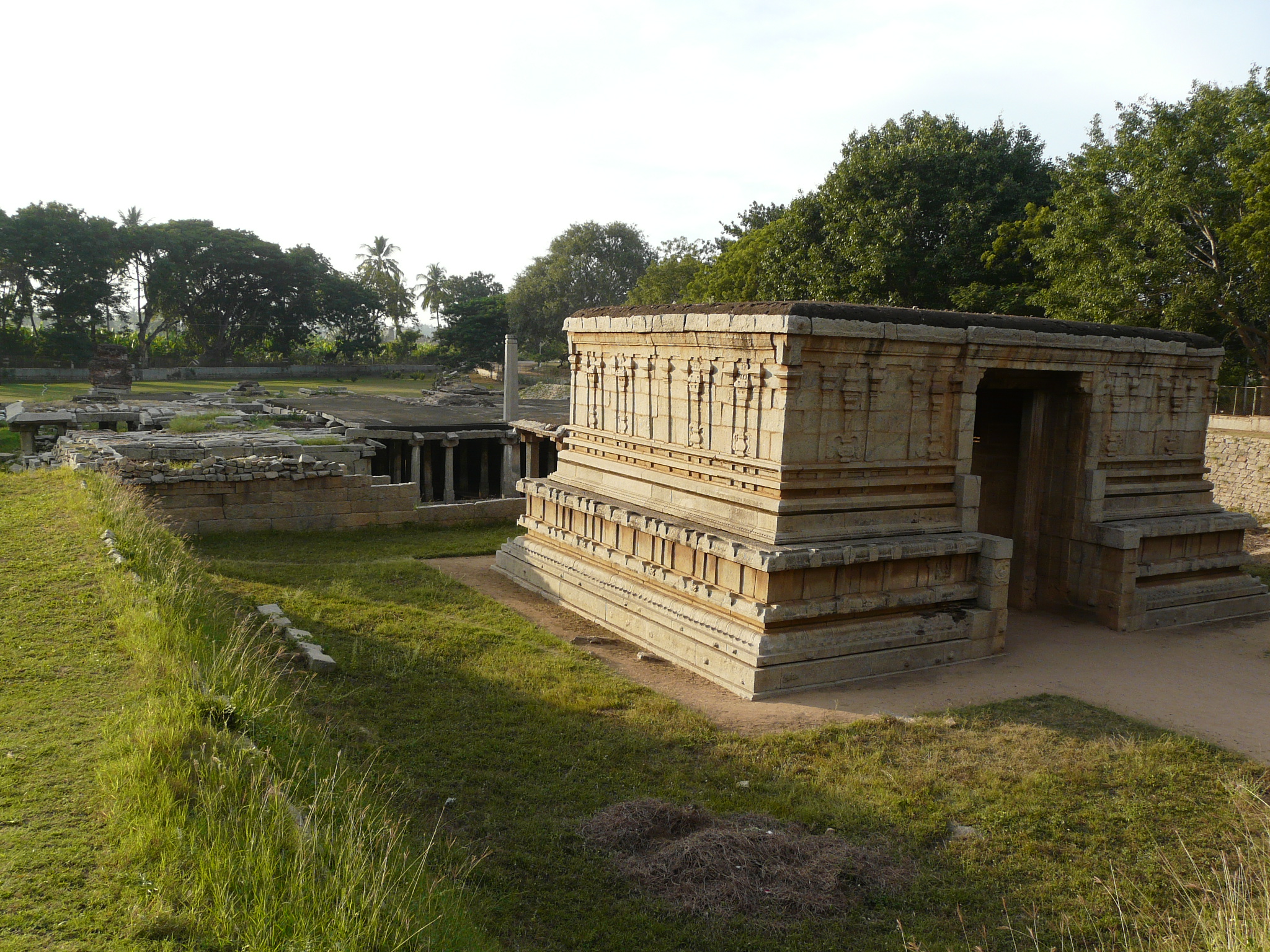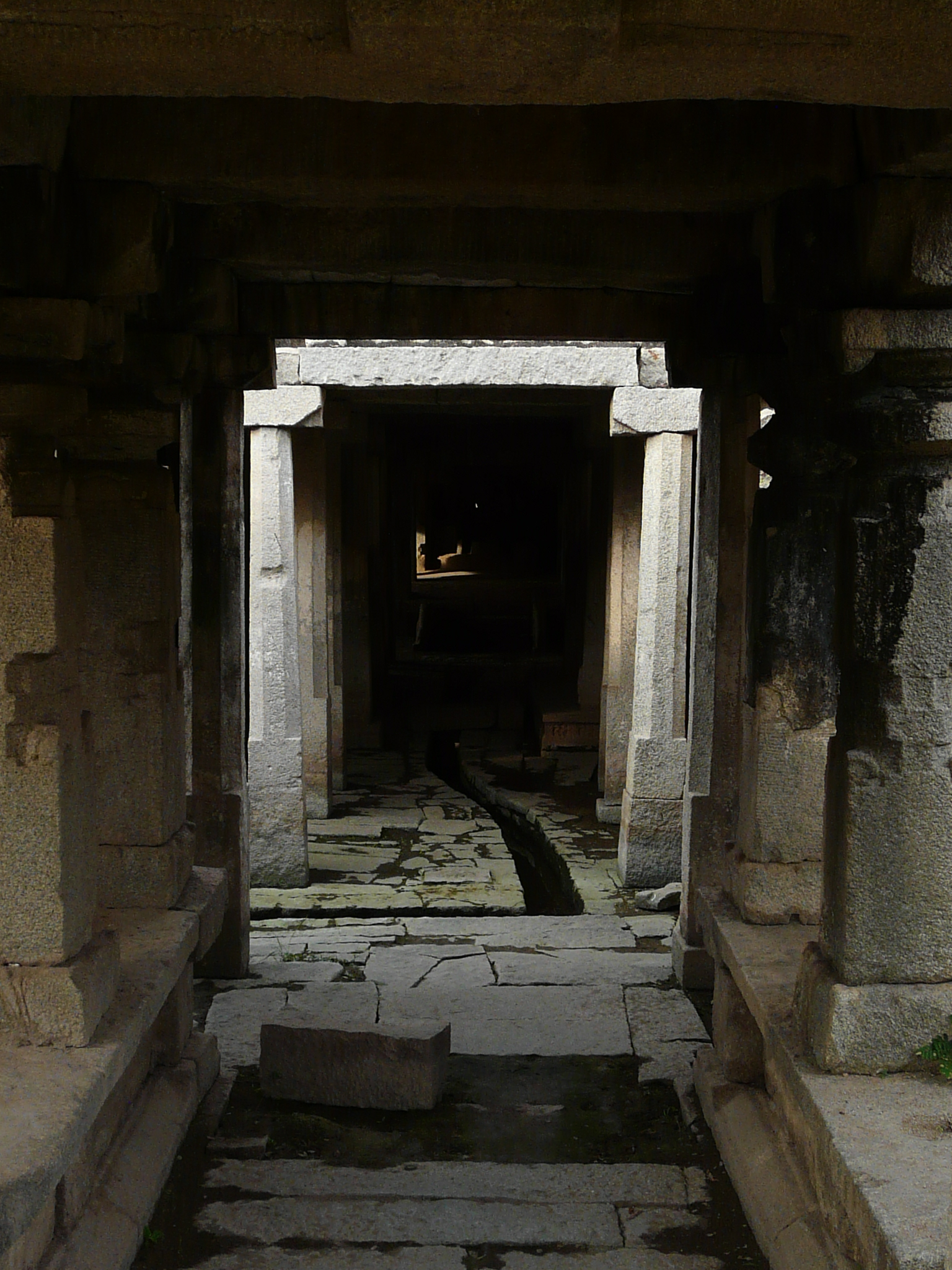 The Underground Temple lies at the western edge of the Royal Center. It is surrounded by irrigated fields on two sides, and is often flooded with water. All this potentially points to an early (14th c) royal Vijaynagar shrine which continued to be patronised in subsequent centuries by Vijaynagar royalty, but was no longer of central focus after temples such as the Hazara Rama Temple were built. This is also a prime example that indicates how restored structures as they exist today were in all probability very different visually (and in usage etc) from what they were like in their heyday.