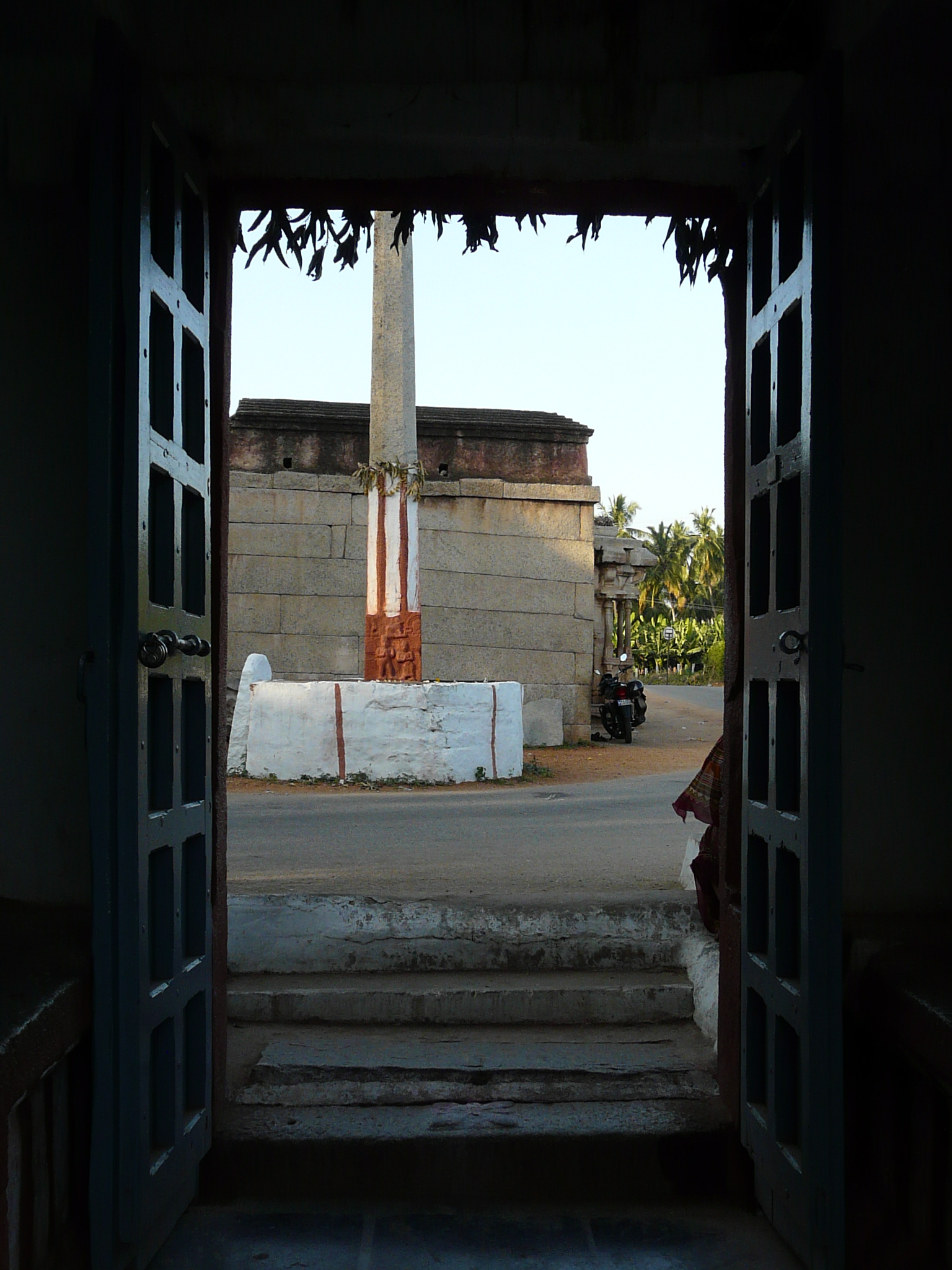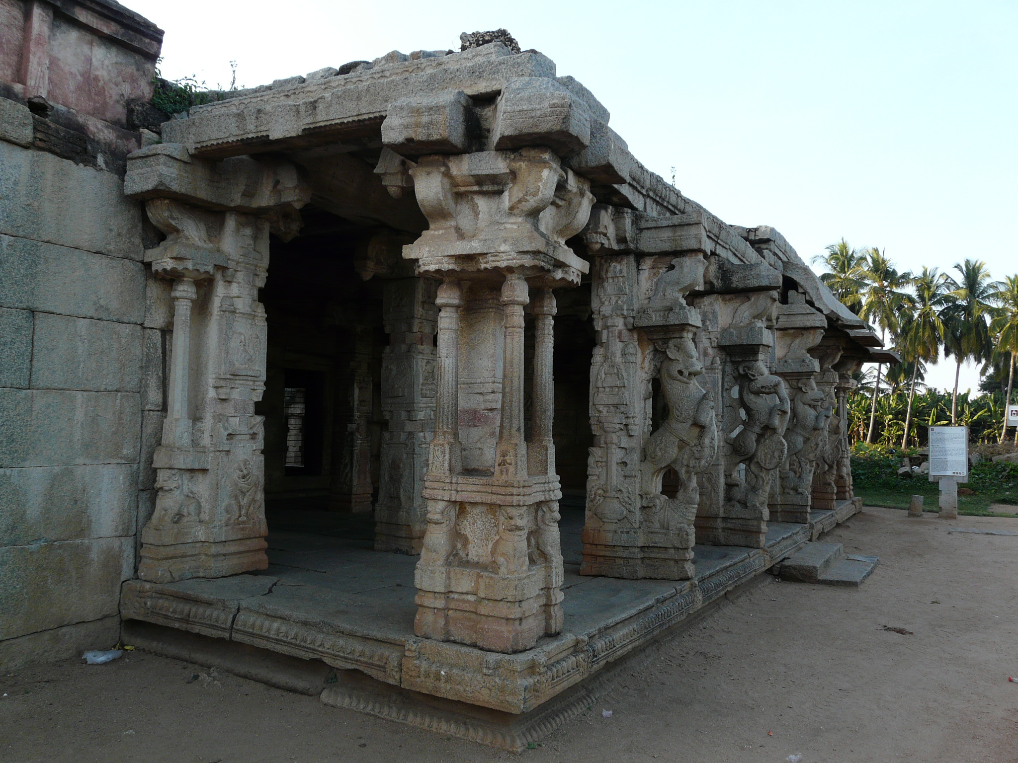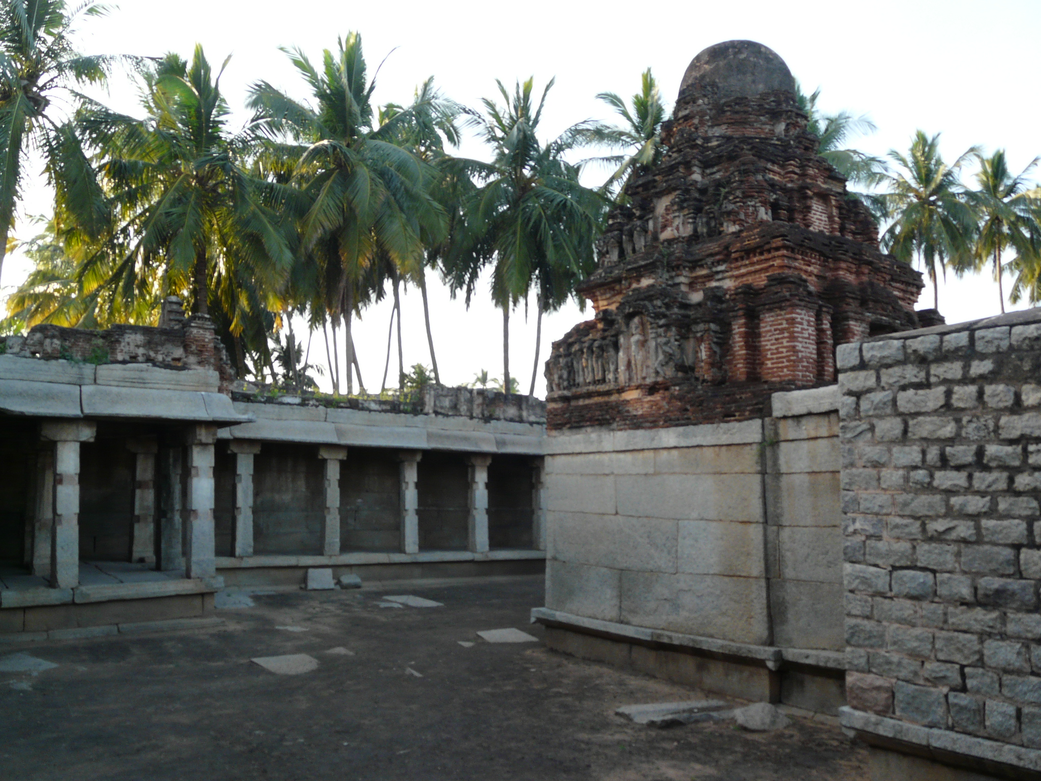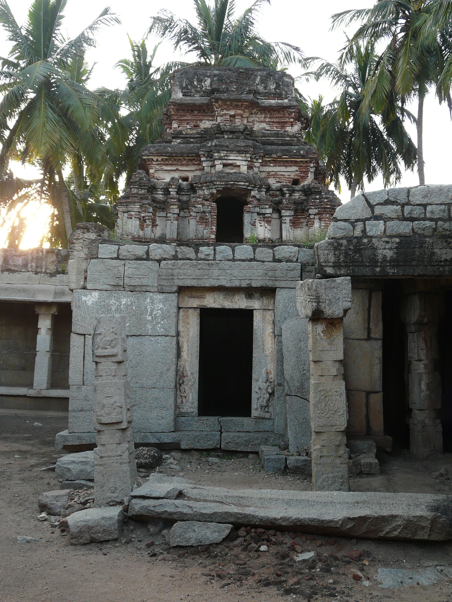 A little distance from Hampi, in the middle of the irrigated valley, the road bends around two temples, an active Uddana Virbhadra temple and an abandoned Vaishnav temple. Both are possibly from the mid-16th c AD, though the Virbhadra temple was originally a gateway for the city, and was repurposed only later.