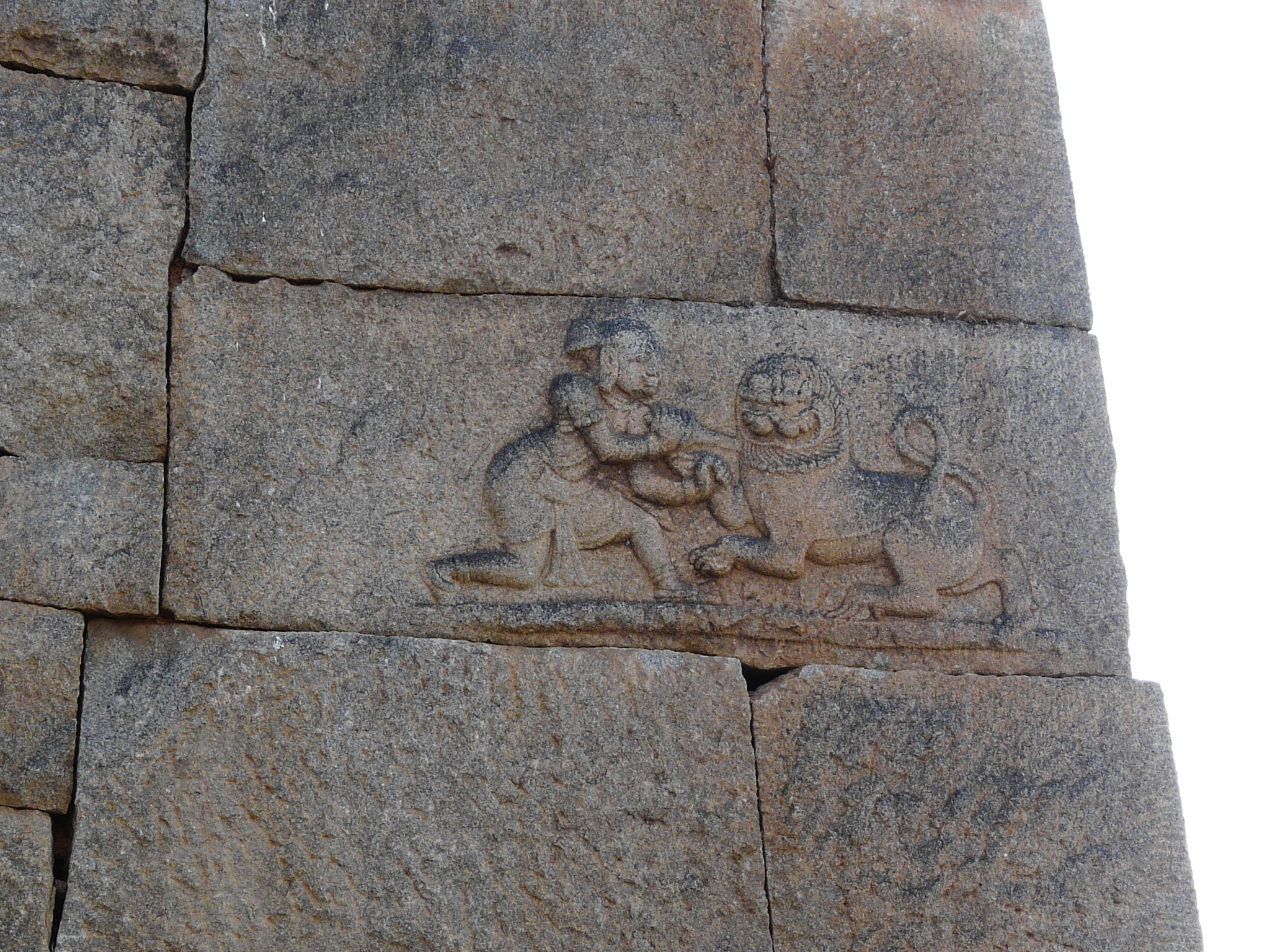 The small set of monuments covered in this post are kind of neither here nor there, since they do not strictly belong either to the sacred or royal centers, but are located within the overall area encompassing the two, so they aren’t strictly ‘outer’ either. They lie along the picturesque road between the two centers, which also connects Hampi Bazaar with the small town of Kamalapur that lies a little to the south-east of the Royal Center.