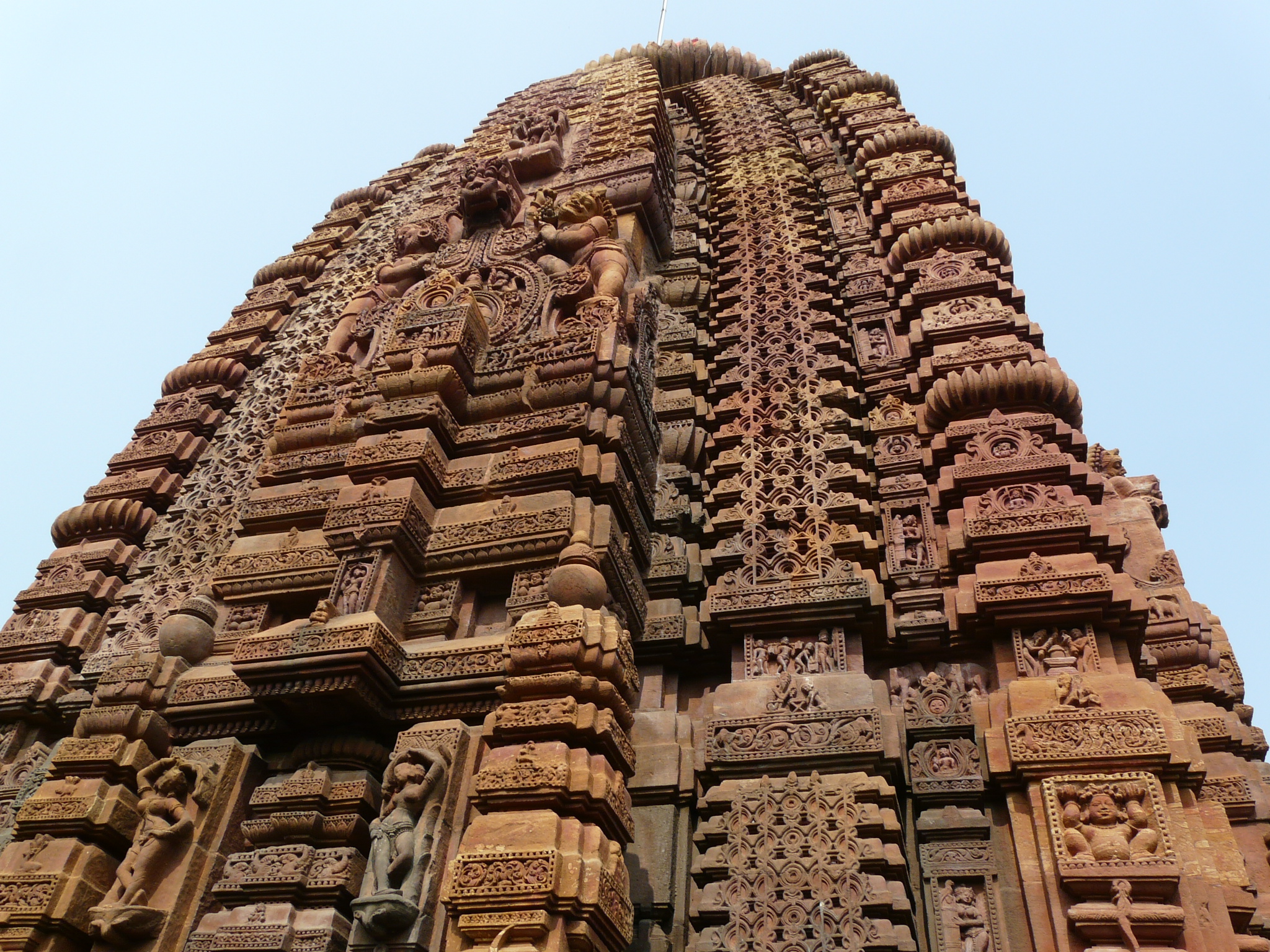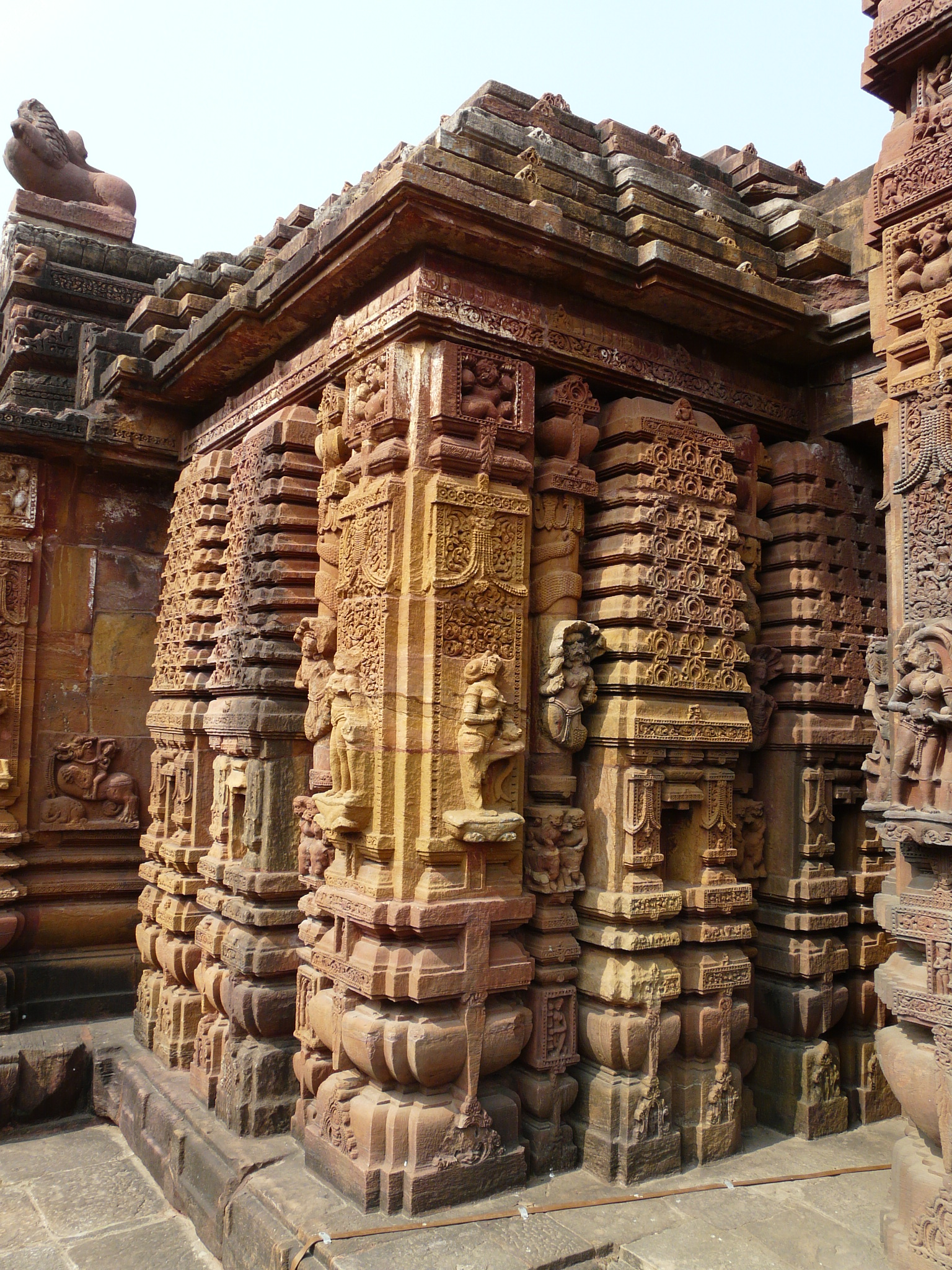 To me, the shape of the sanctum tower of this temple seems to be a little at odds with the rest of the sequence of Odia temples. You can see a similarity or evolution between the earlier and later sanctum towers (Rekha Deul), in terms of the boldness of their overall massing and the curvature/taper of the tower as it moves upwards. The tower of Mukteshwar seems to be a little different. Perhaps it is not as large in relation to its mandap as the earlier and later stylistic siblings, maybe the proportions between the lower and upper portions of the tower are different, or perhaps the curvature/taper of the tower is a little different. The tower of this temple seems to be closer to some northern Indian temple tower styles. Chalk it down to the experimentation that marks this temple as a transitional one.