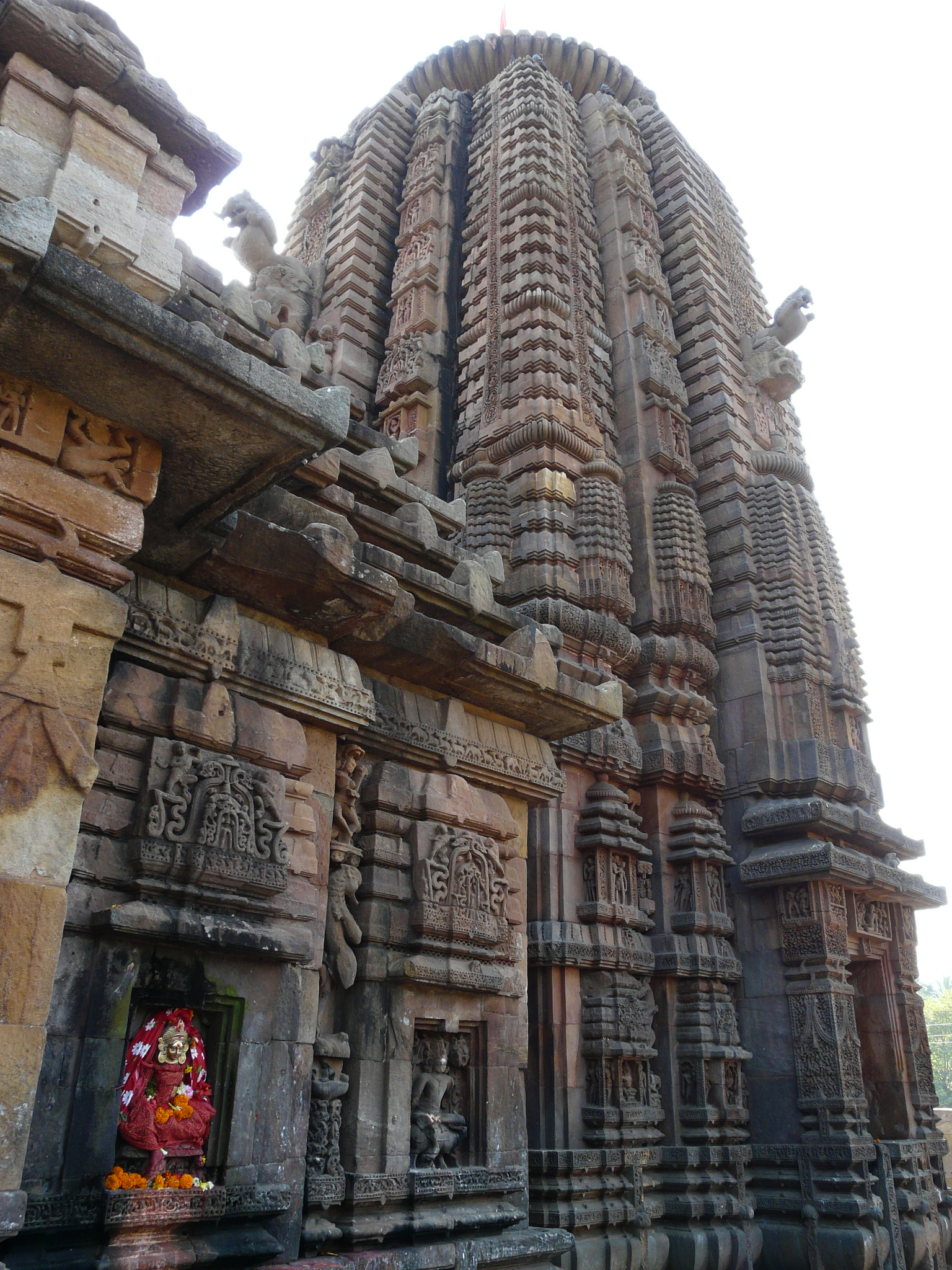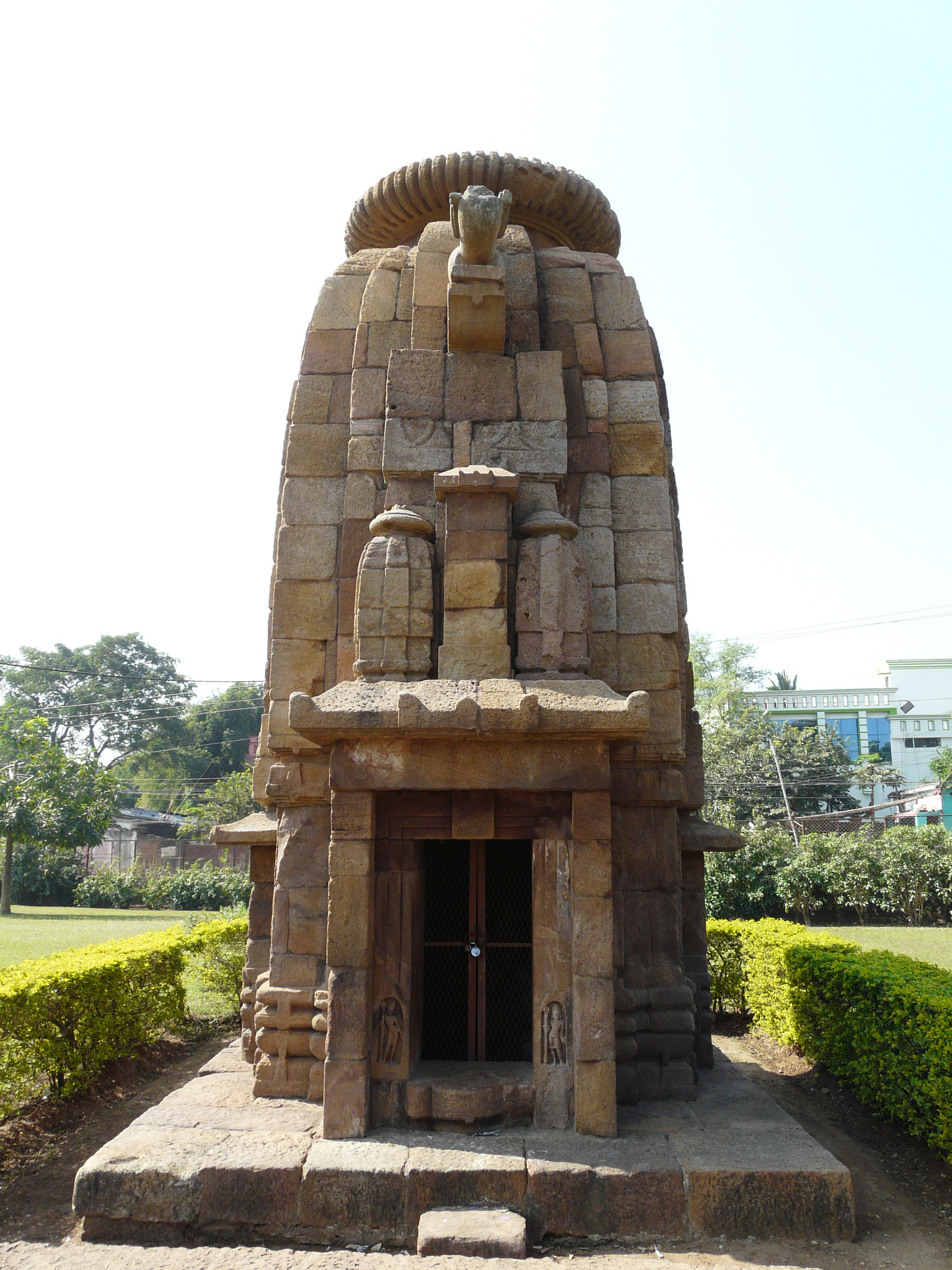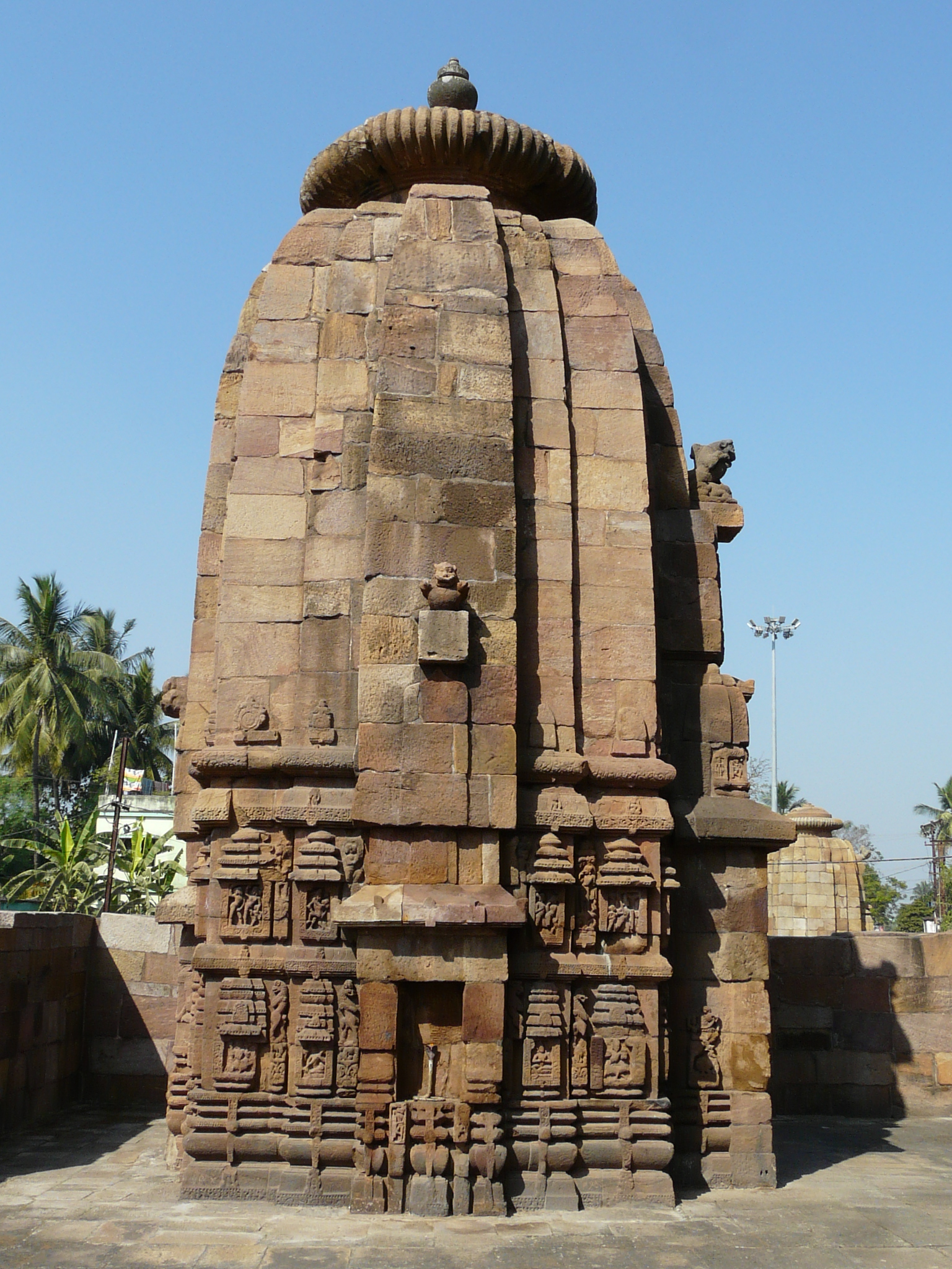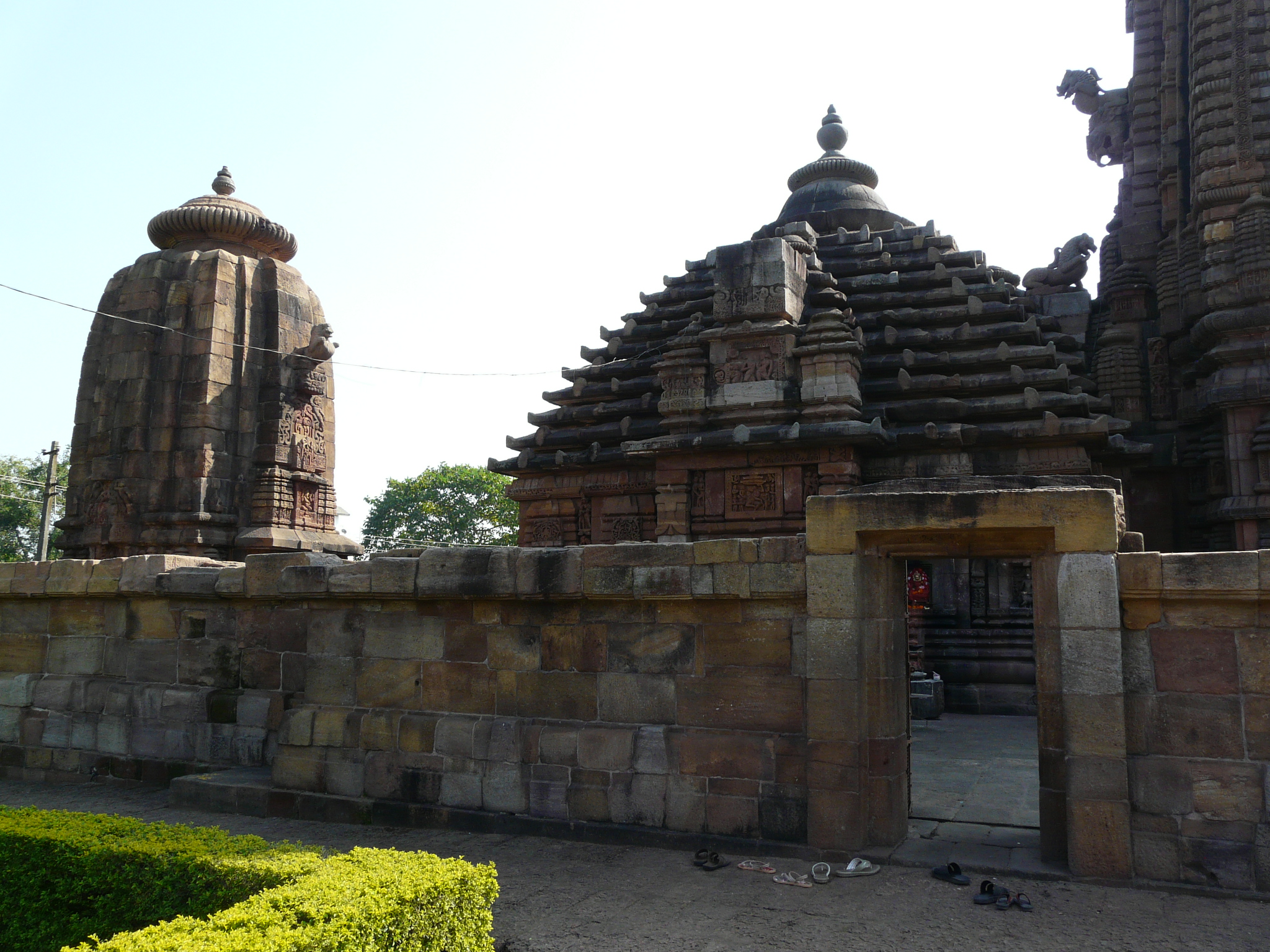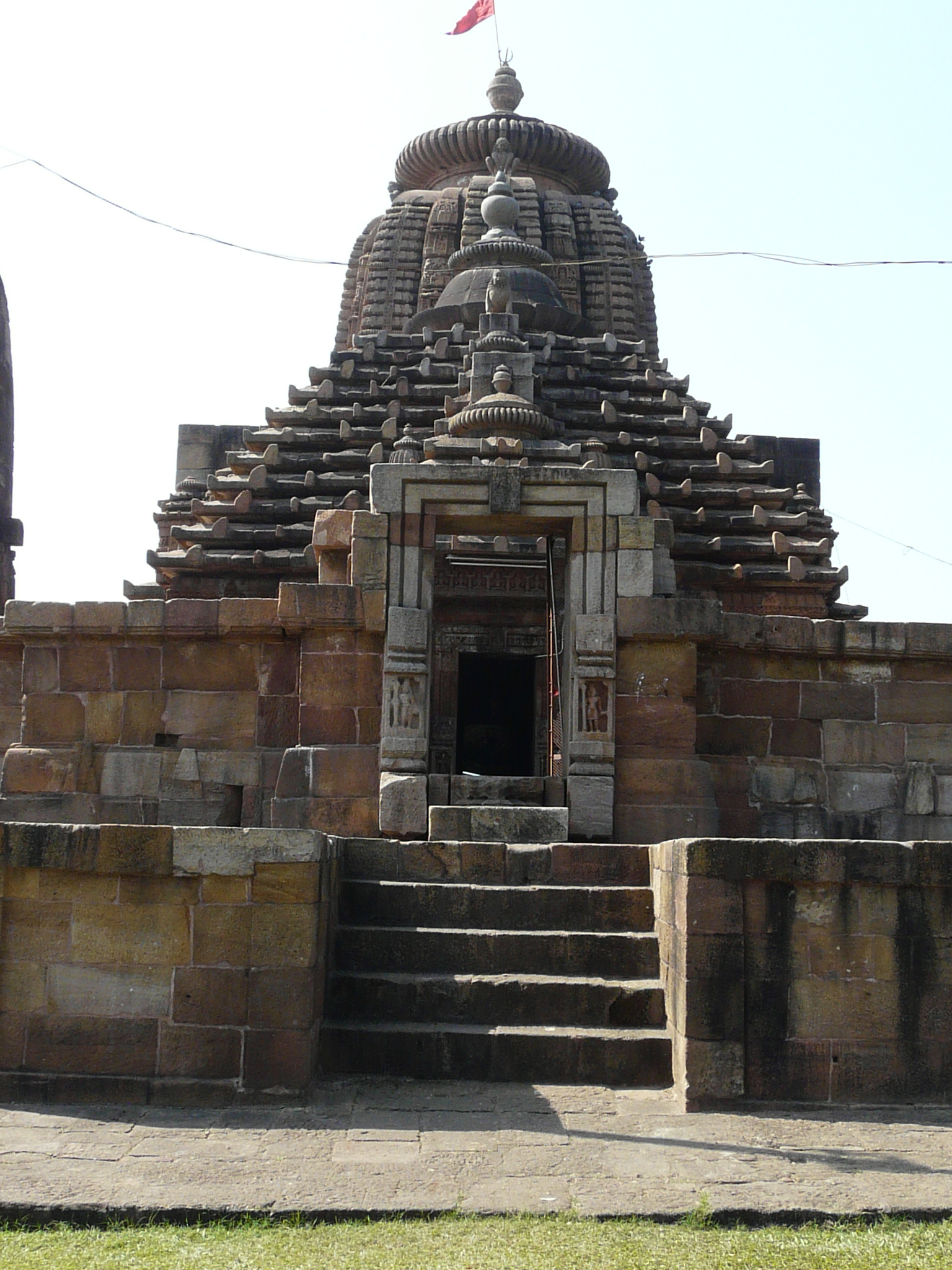 This mid-11th c example is the first we come across where the temple is set within a coherent walled complex with side shrines (in this case four corner shrines), and hints at the much larger complexes of the Lingaraja and Jagannath Puri temples.