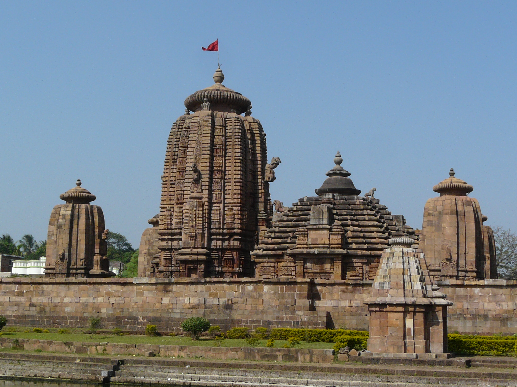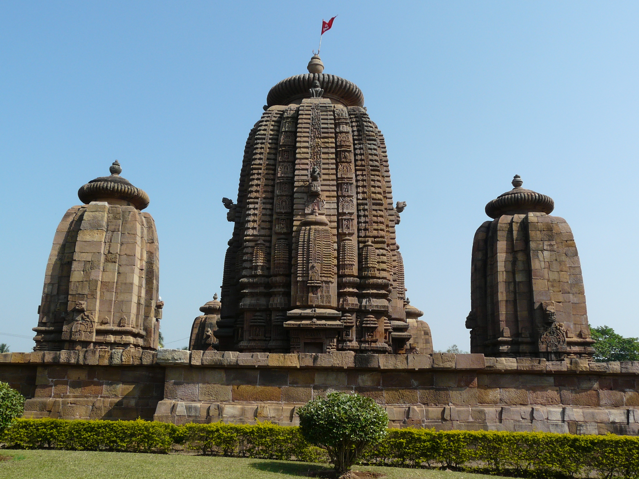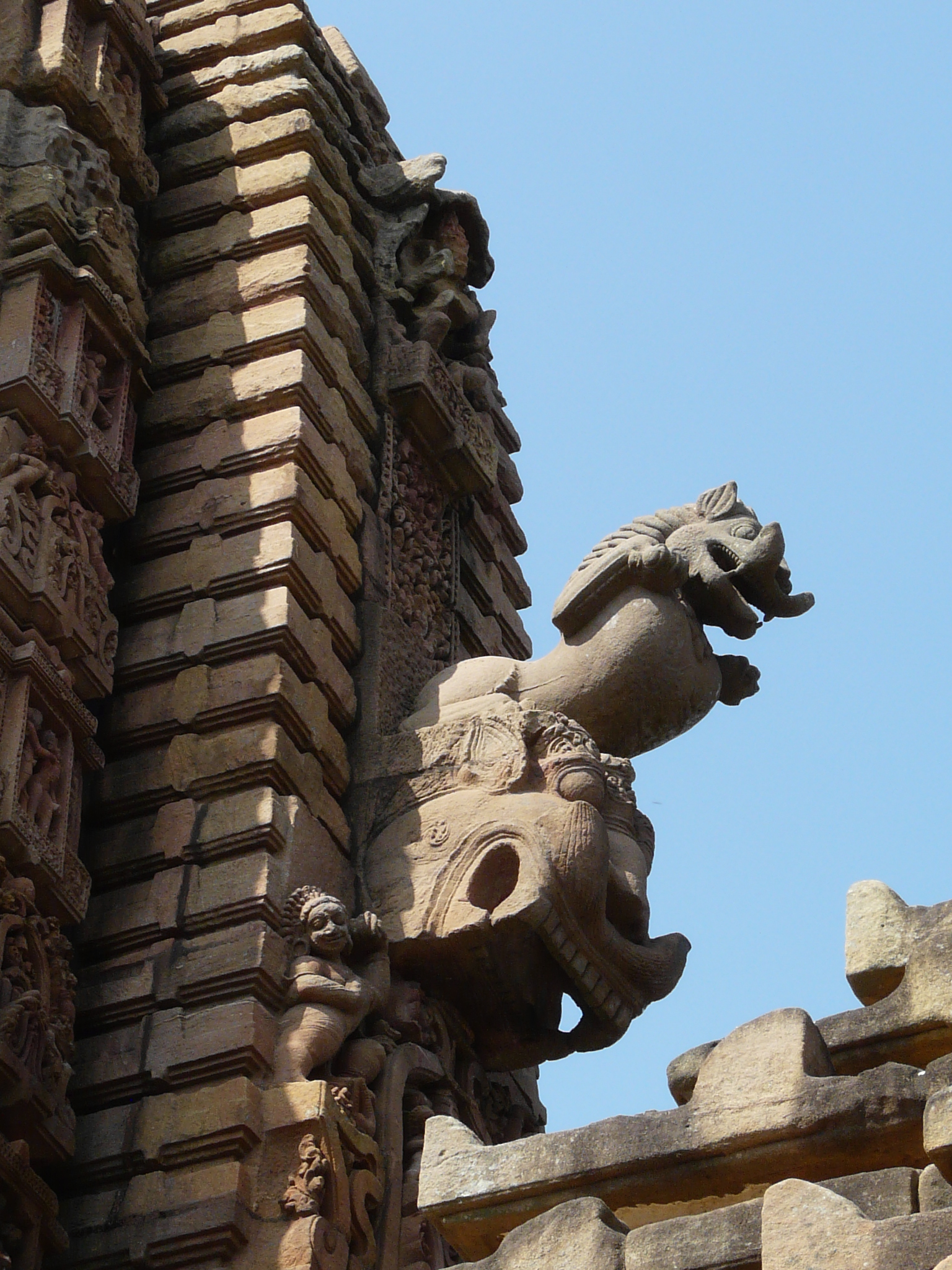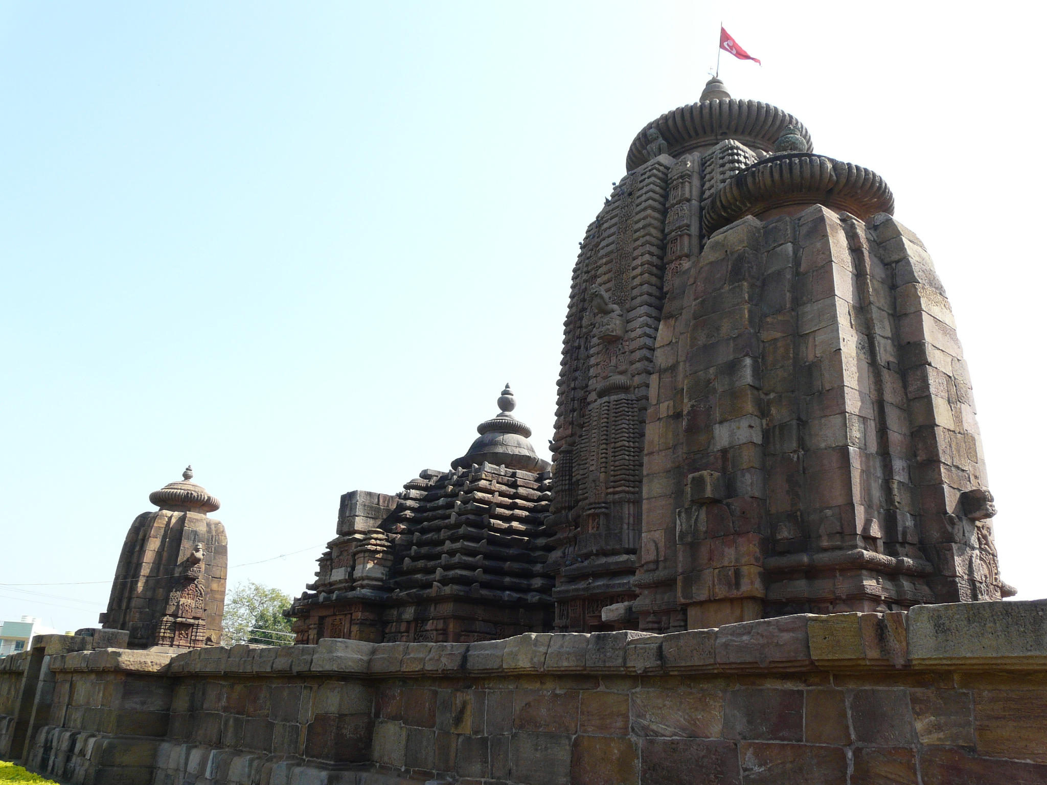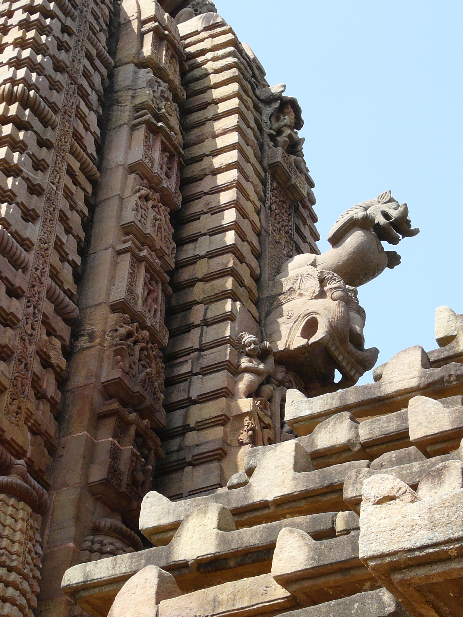 This mid-11th c example is the first we come across where the temple is set within a coherent walled complex with side shrines (in this case four corner shrines), and hints at the much larger complexes of the Lingaraja and Jagannath Puri temples.