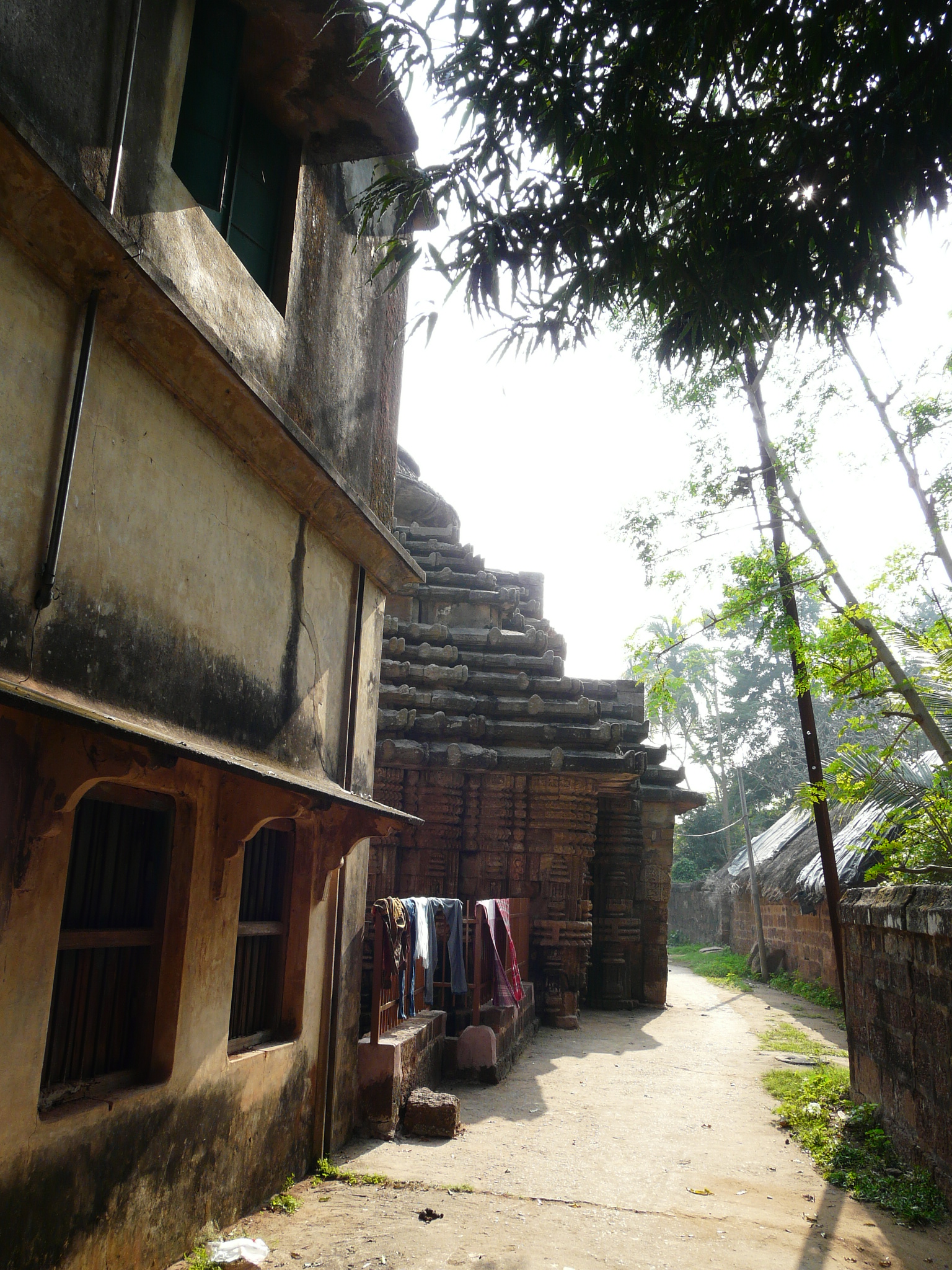 Part of the Pidha Deul (mandap) of Sari sticks out onto the adjacent street