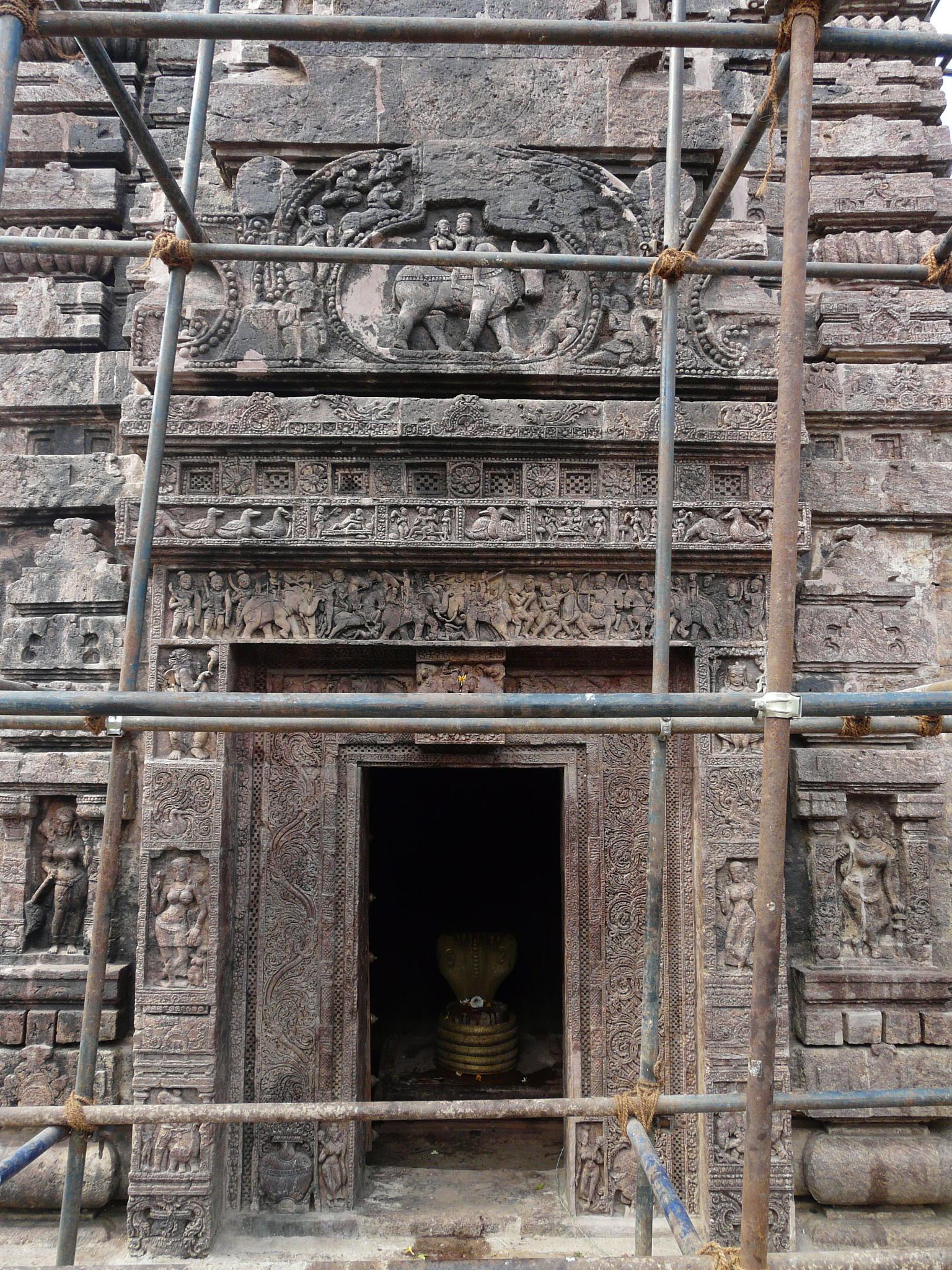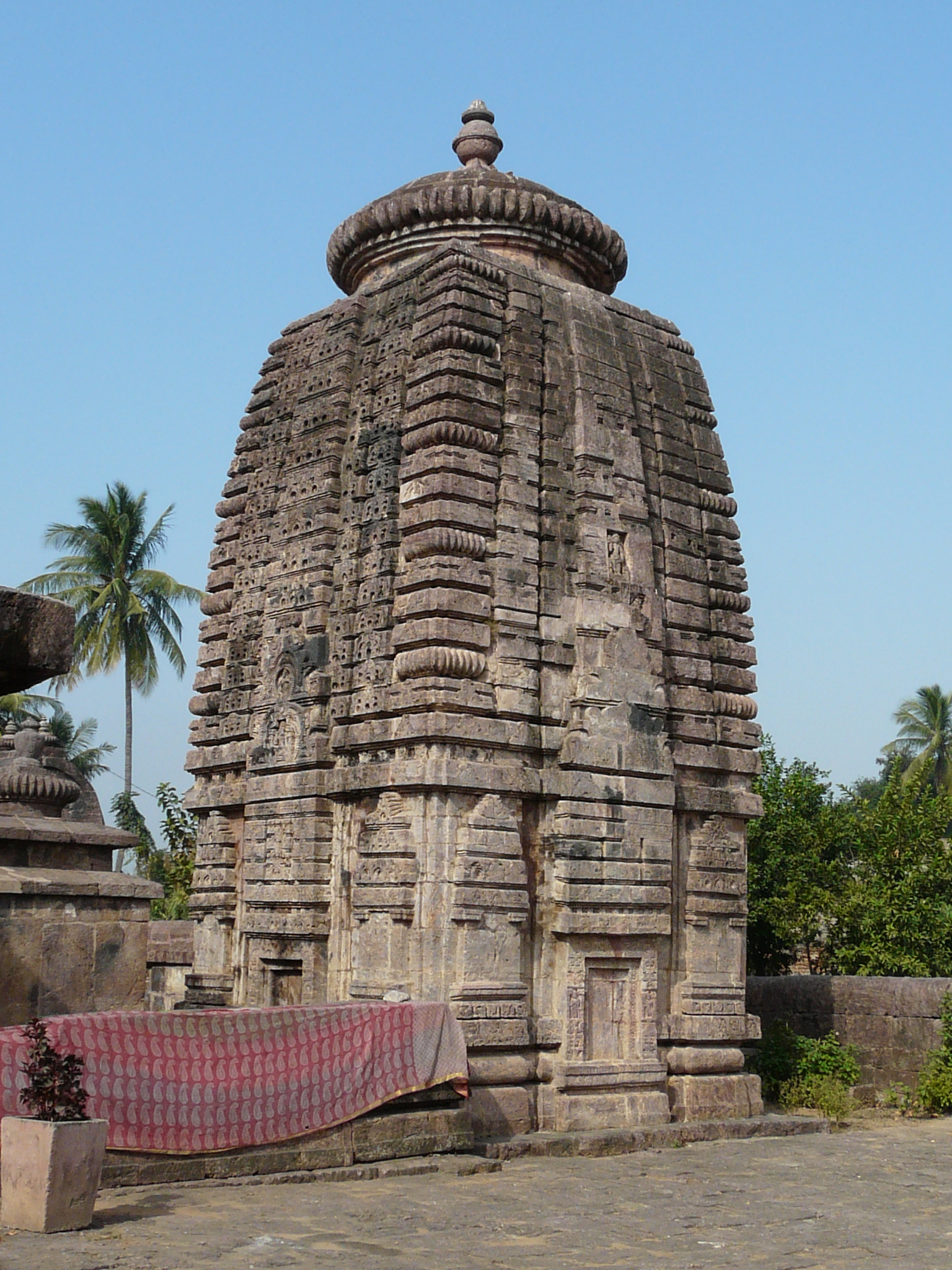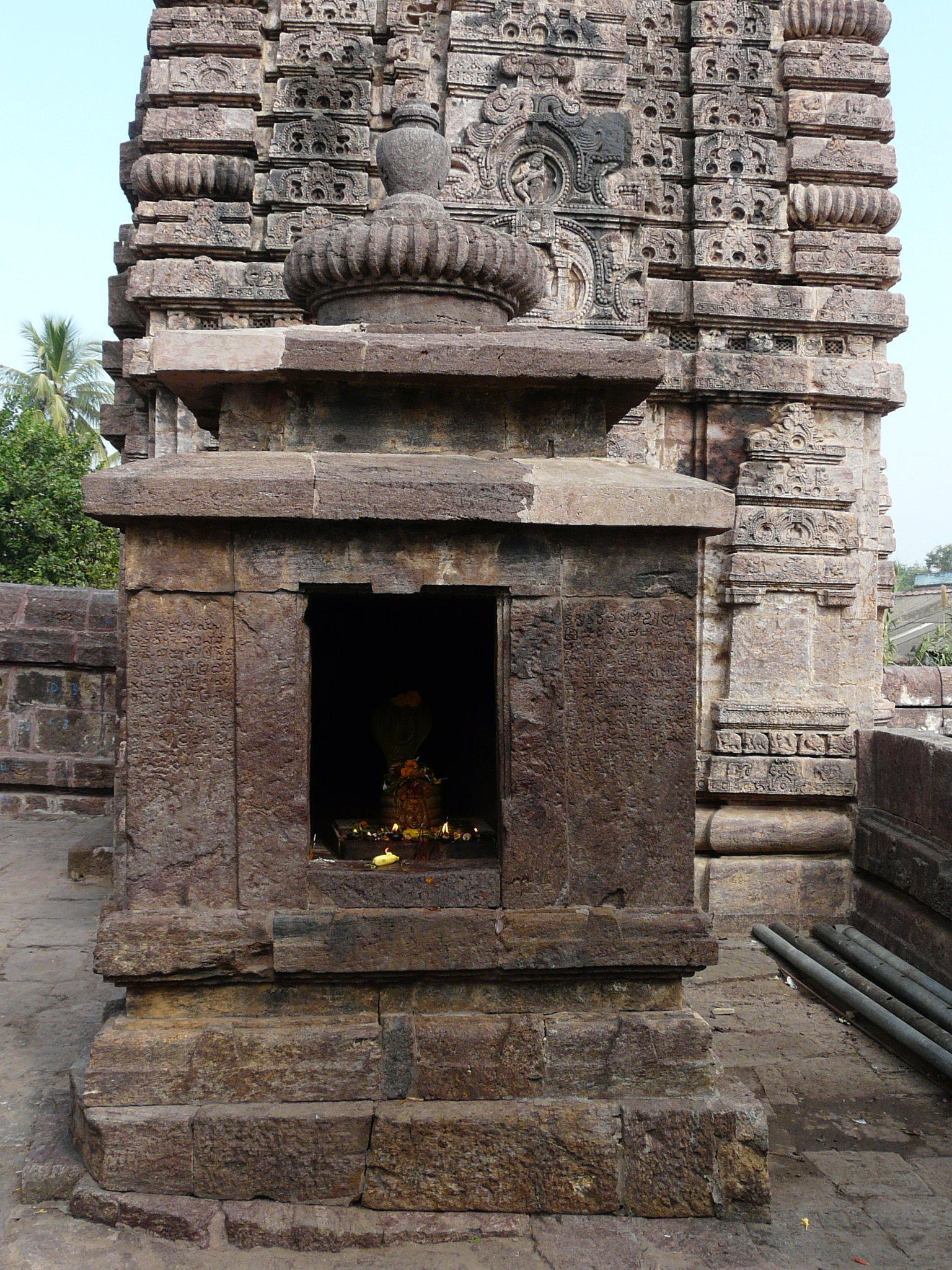 Near the northern tip of Andhra Pradesh is the small town of Mukhalingam, which once was the location of Kalinganagara, the capital of the early Eastern Ganga rulers. What remains of this capital are two temples from the 8th c and one from the 10th c, all built in the early Odia style. The Madhukeshwar Temple, one of the 8th c temples, is the largest of the three. It is set in a walled compound, with subsidiary shrines at each corner of the compound.