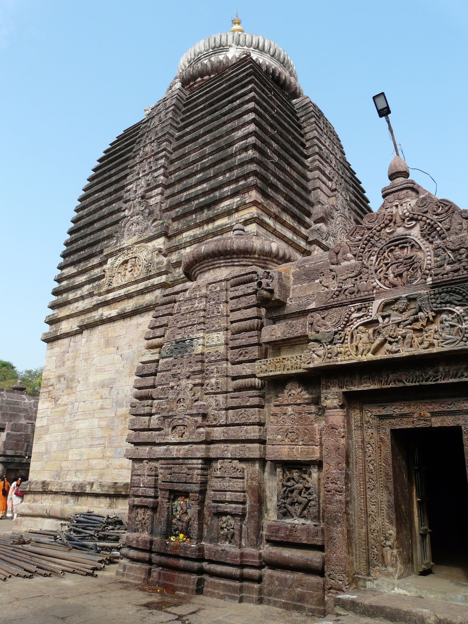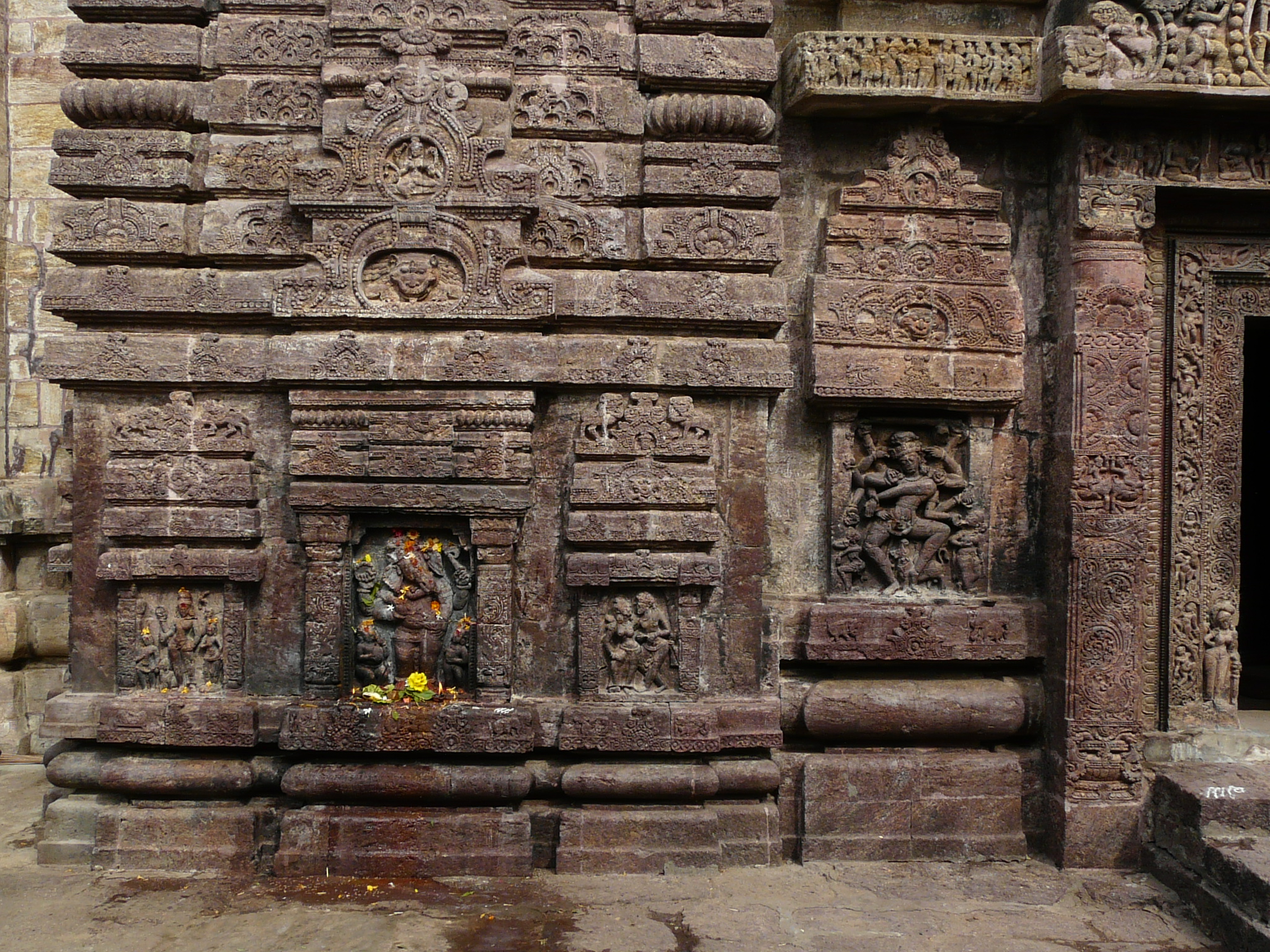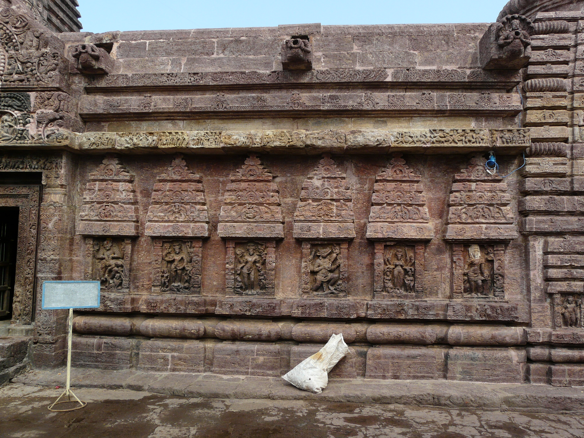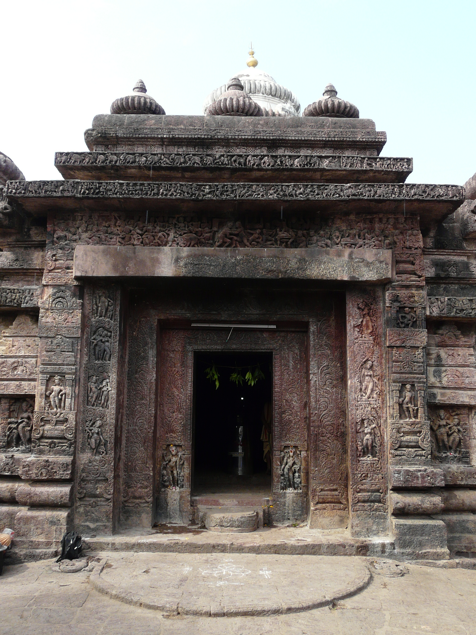 The temple mandap is rectangular like other early Odia temples, but does not follow the typical style of the Parashurameshwar temple mandap at Bhubaneswar. Instead, it is similar to the mandap of the Vaital Deul temple (late-8th c), with each corner occupied by small shrines.