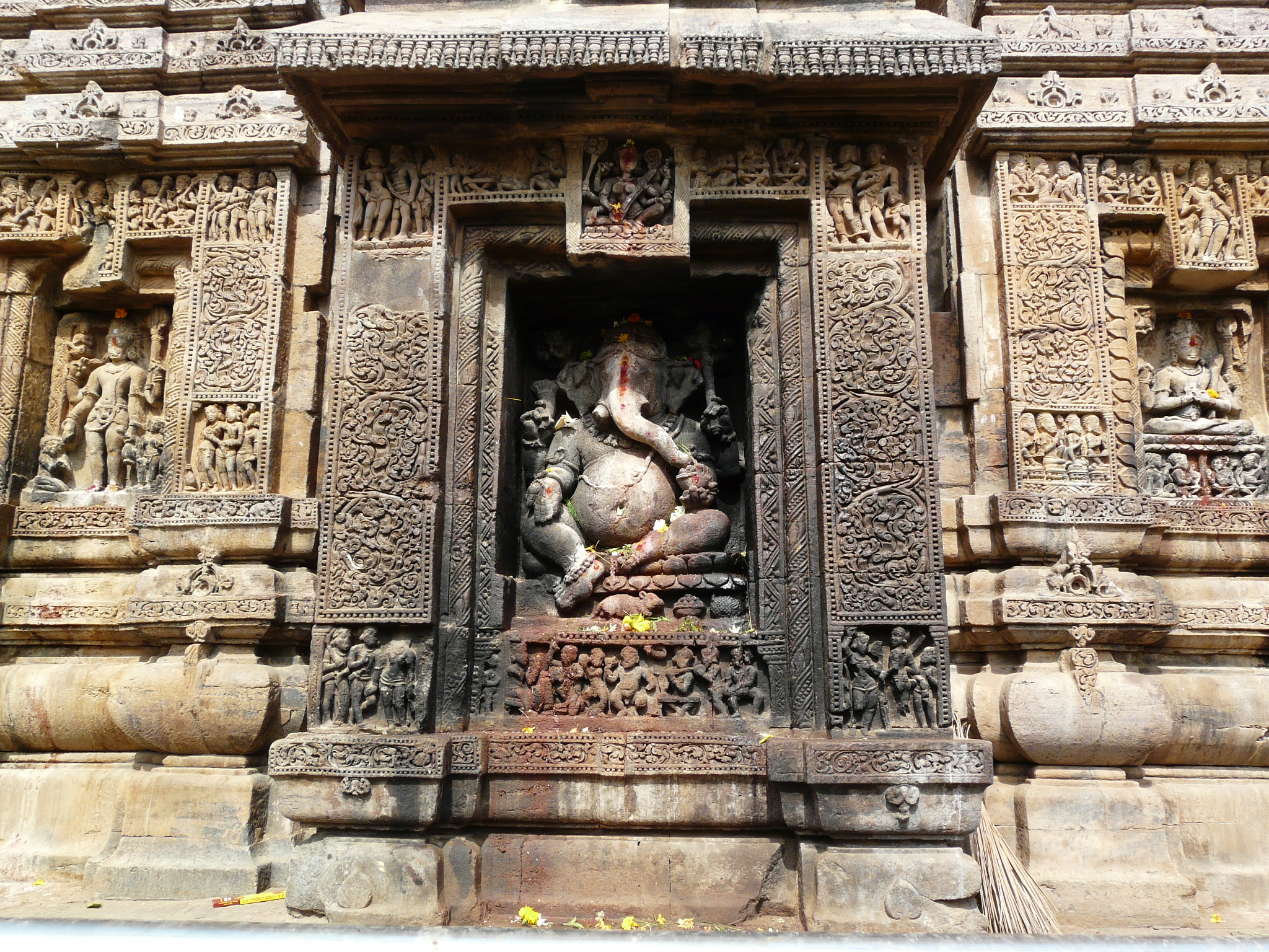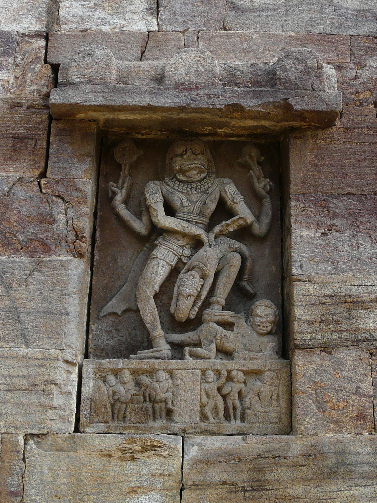 Bhimeshwar temple is ostensibly from the 8th c, like the larger Madhukeshwar, and the basic layout of the two temples is the same, except Bhimeshwar seems to have a sort of antralay between the mandap and sanctum. The sanctum towers are in the same style. The mandap has an entrance from the front (east) and side (south) just like Madhukeshwar, but the Bhimeshwar mandap is almost completely devoid of ornamentation, with plain stone walls. The mandap also seems to be in dire need of restoration work, because from the front it looks like it’s drooping from both sides. There are also no enclosure walls or auxiliary shrines.