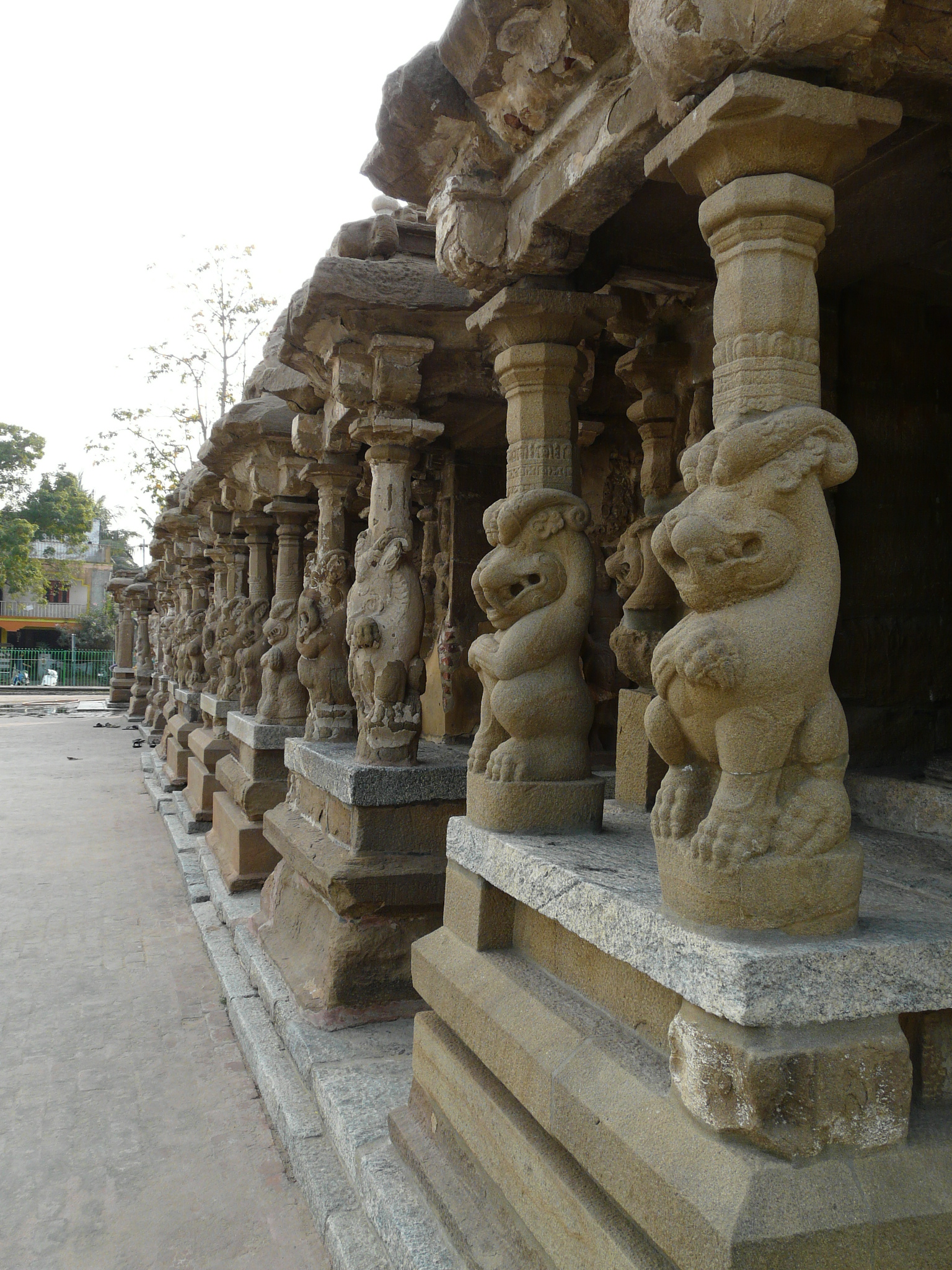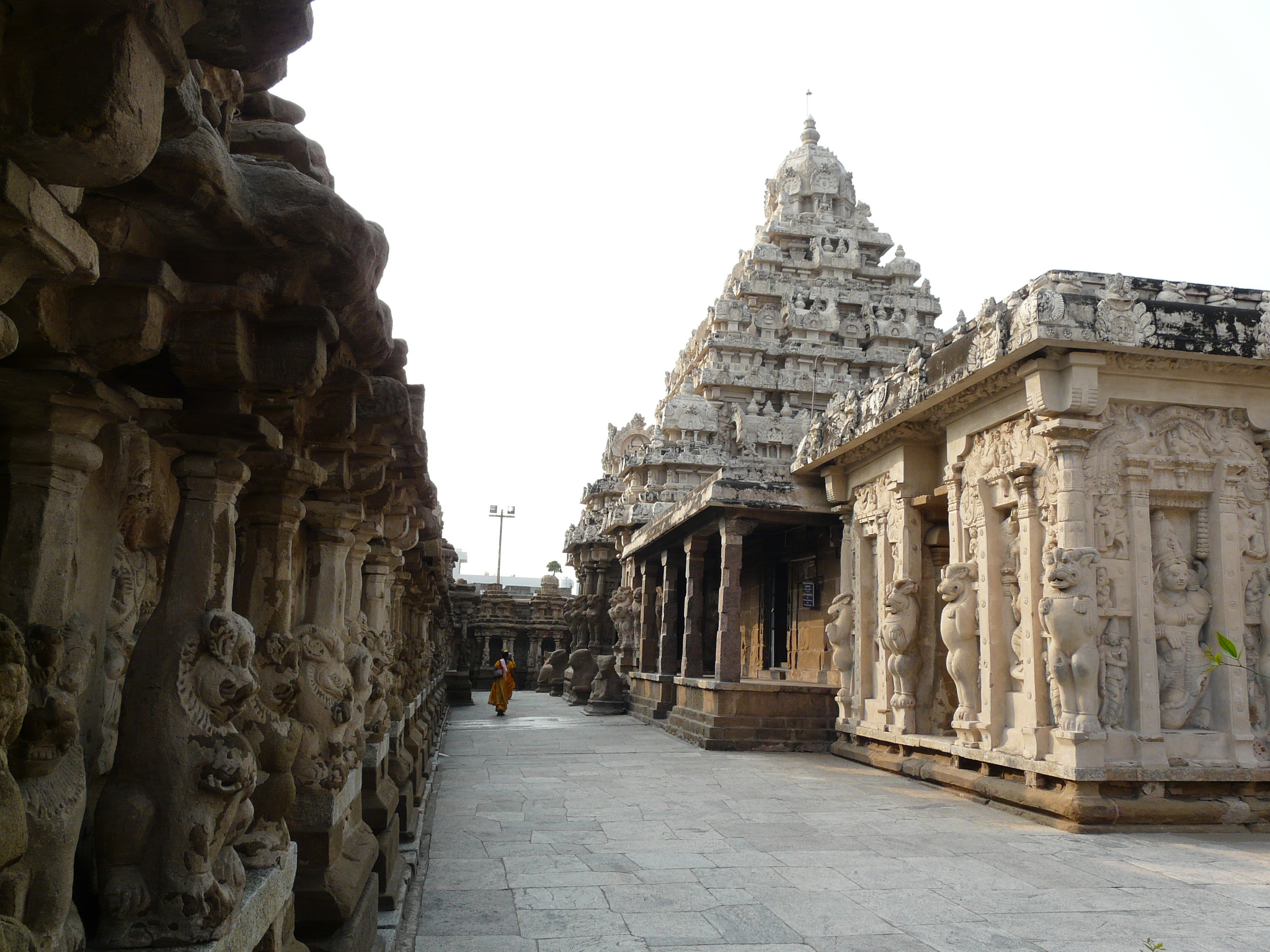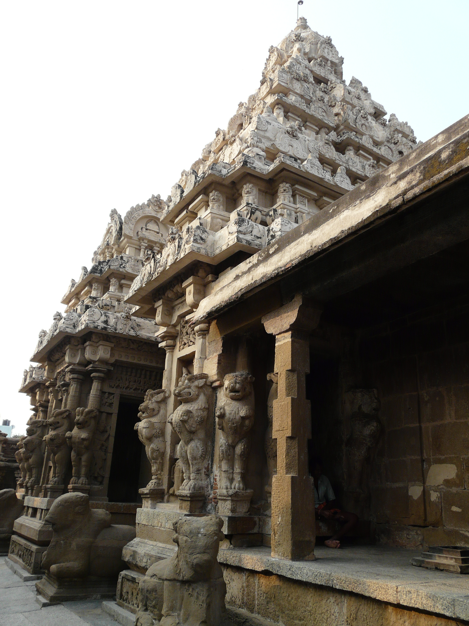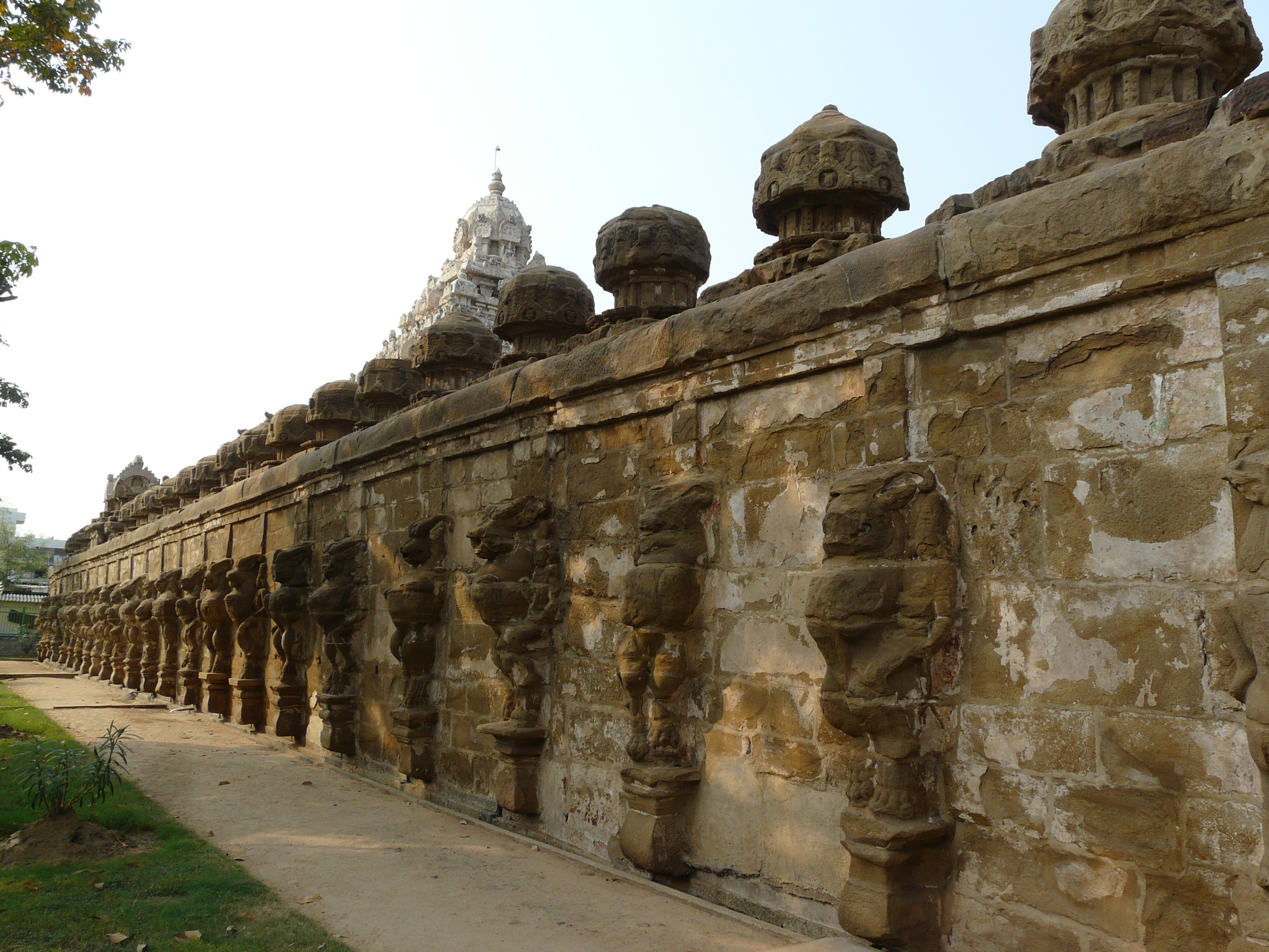 The early-8th c Kailasanatha Temple is the oldest, largest and most important Pallava temple in Kanchipuram, and was built at the same time as the smaller Shore Temple at Mamallapuram. These two are the earliest extant examples of structural temples in Tamil Nadu.