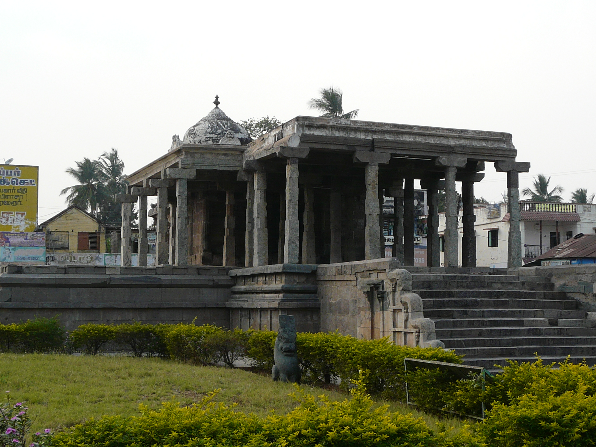 Another temple, adjacent to the bus stand, is the Vaikuntha Perumal Temple. Within its compound is a smart colonial-era building which houses many inscriptions found at Uttiramerur, from the Pallava and Chola period.