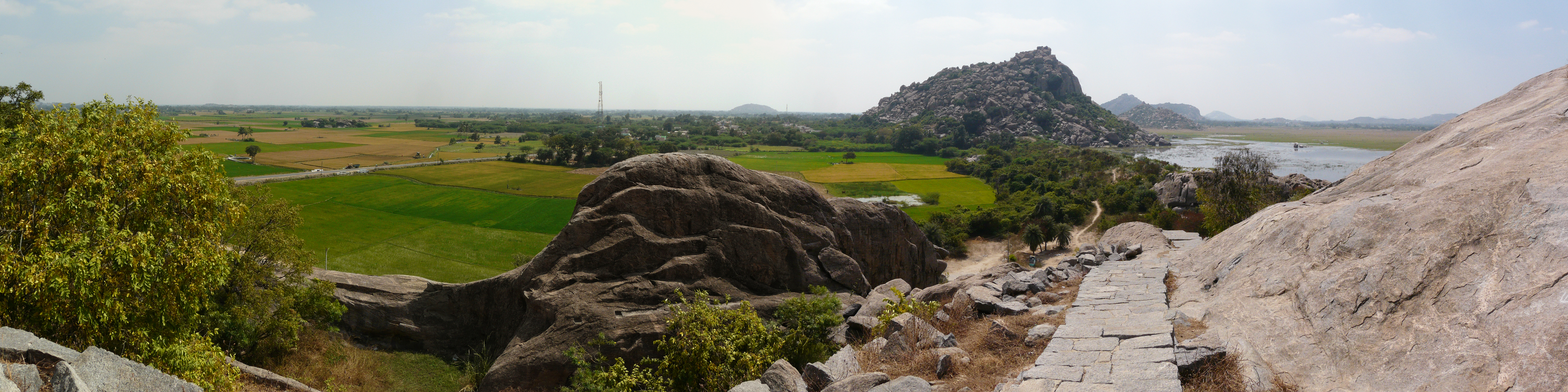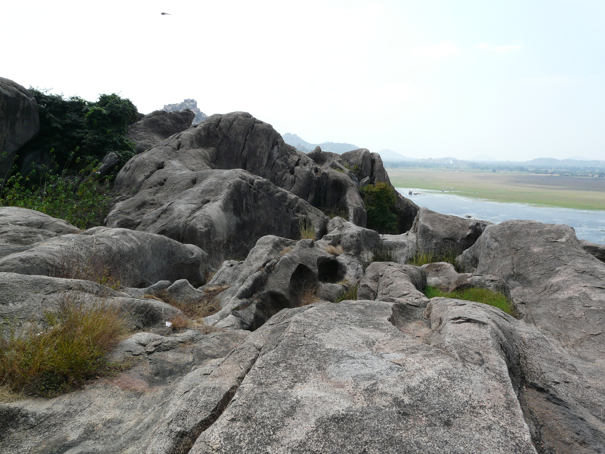 The rocky landscape around the lake. This temple is situated south of the Gingee area, and the landscape is very similar