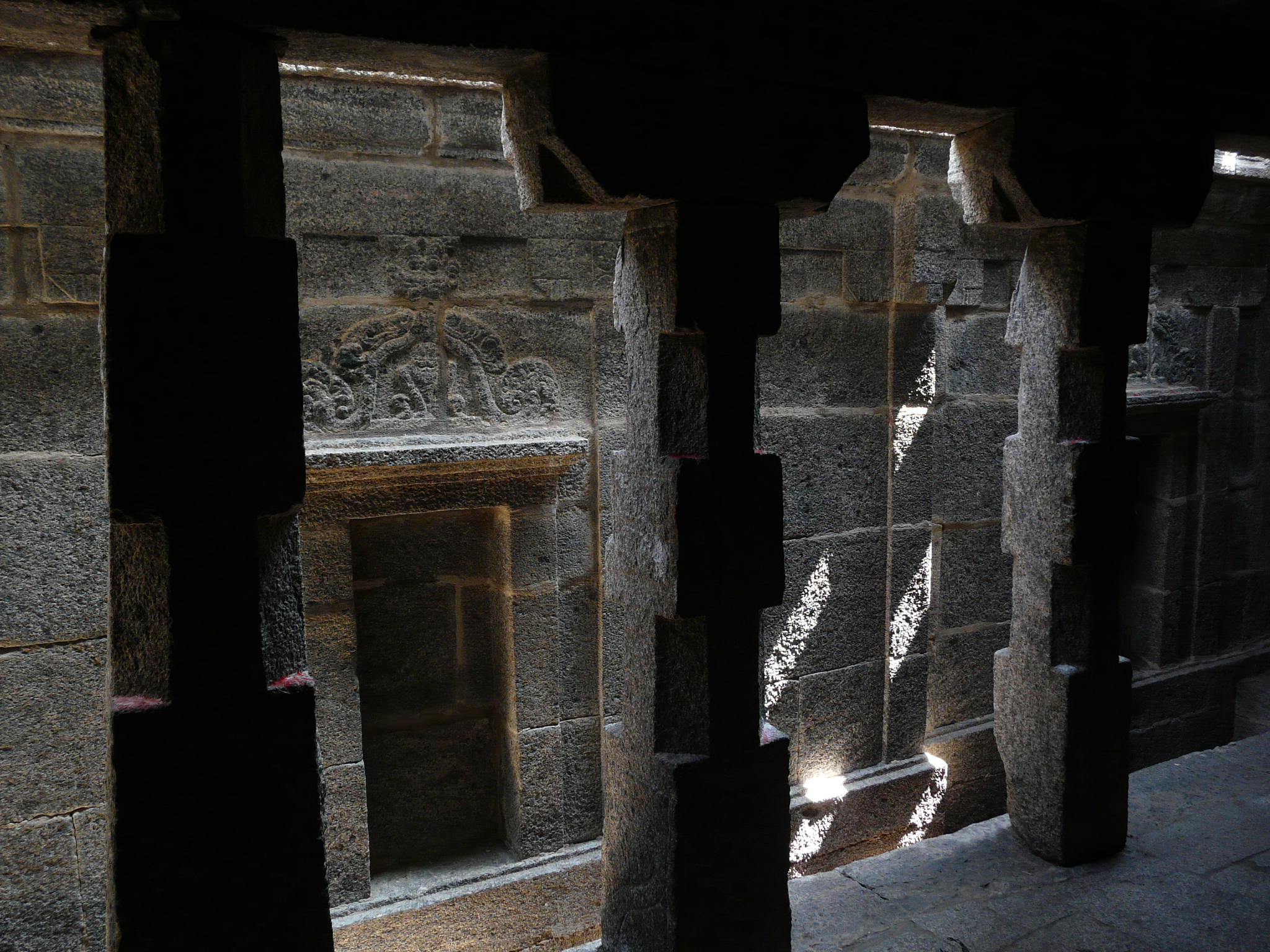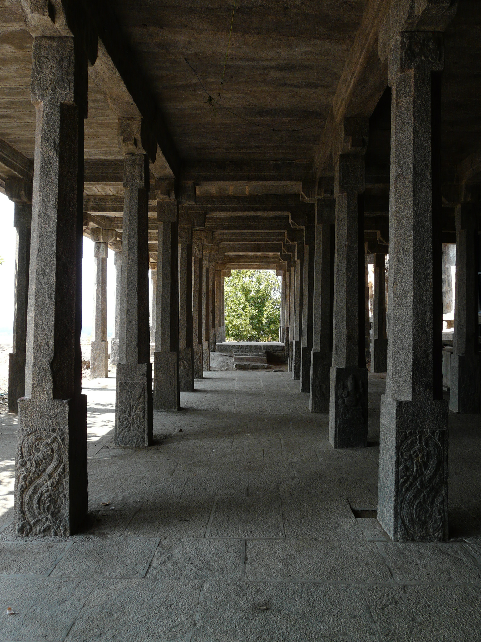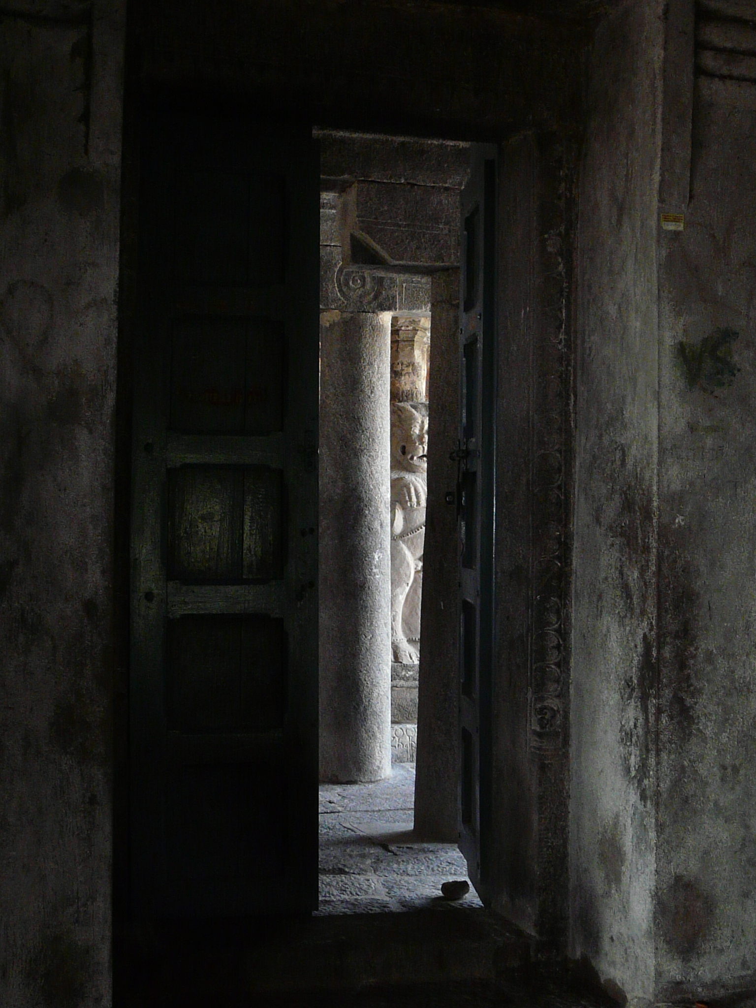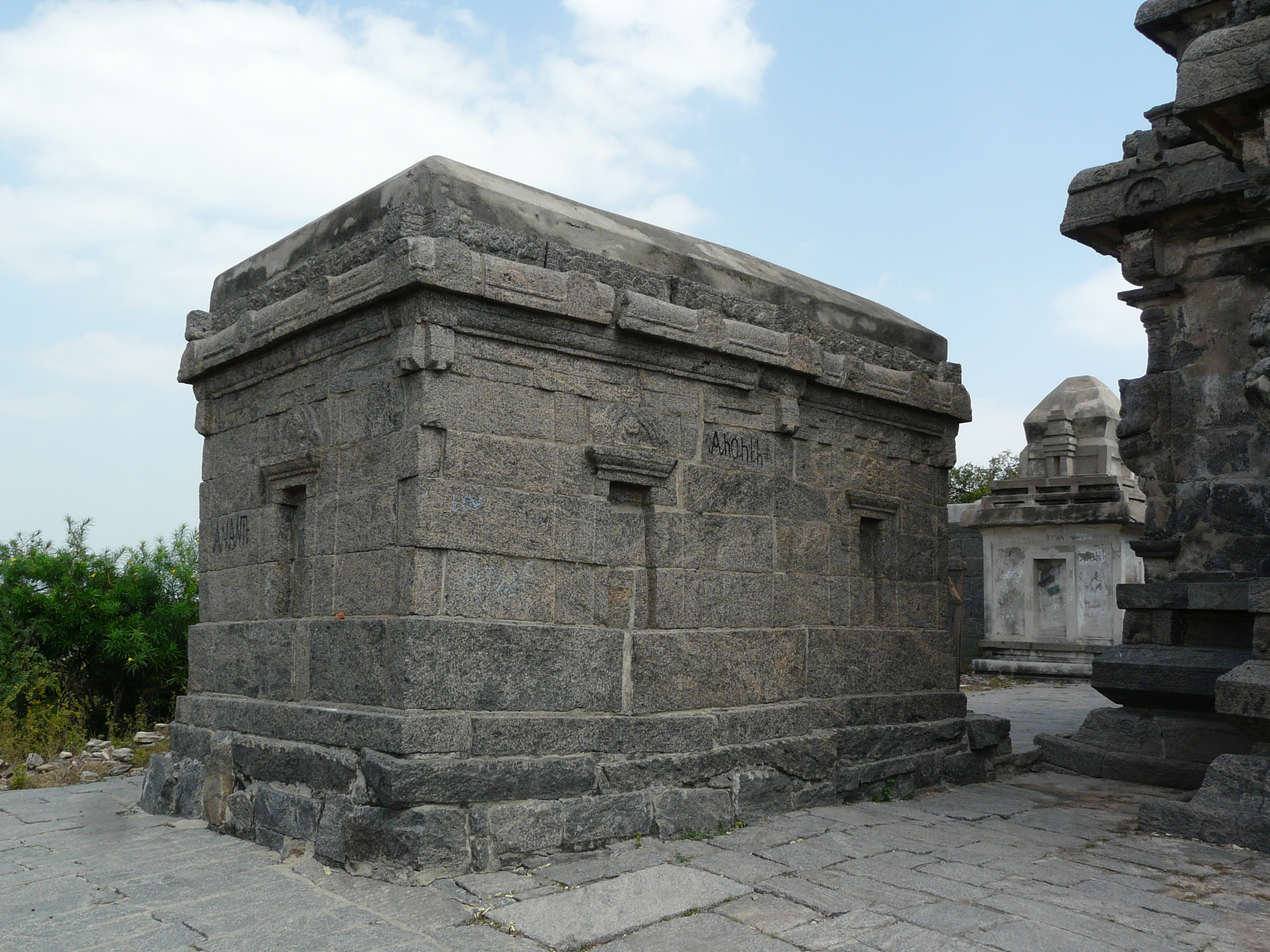 Near the village of Panamalai is located an early-8th c AD Pallava temple known as Talagirishwara. It is situated on a granite outcrop next to a lake (hence the name). Like the Kanchipuram Pallava temples that it is contemporaneous with, and unlike the later Uttiramerur Pallava temples, Talagirishwara has the rearing-lion-yali sculptures on its sanctuary outer walls. Only the sanctuary structure is from the Pallava era, the adjoining mandapa and shrines are from the Vijaynagar period.